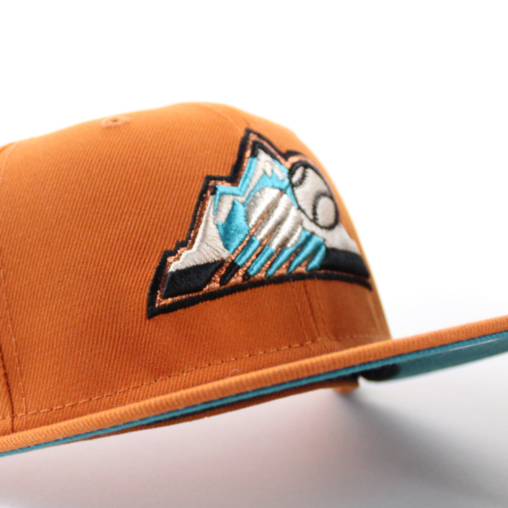 Colorado Rockies 25th Anniversary New Era 59Fifty Fitted Hat in Rust and Aqua Under Brim.