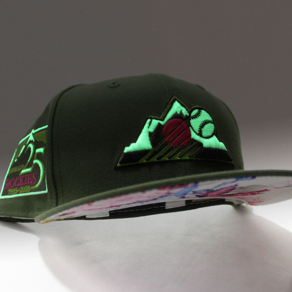 Colorado Rockies 25th Anniversary New Era 59Fifty Fitted Hat (Glow in the Dark Rifle Green Floral Under Brim)
