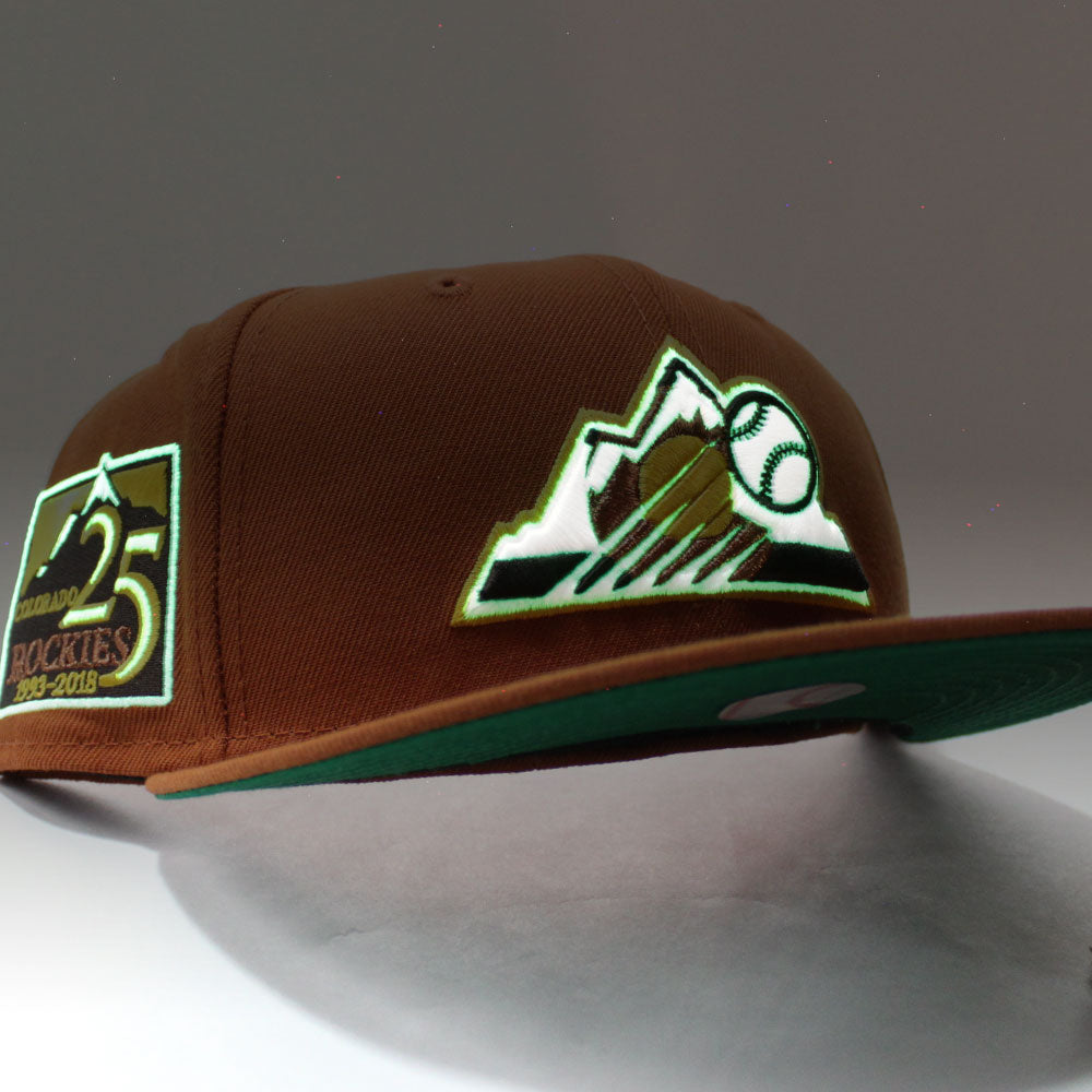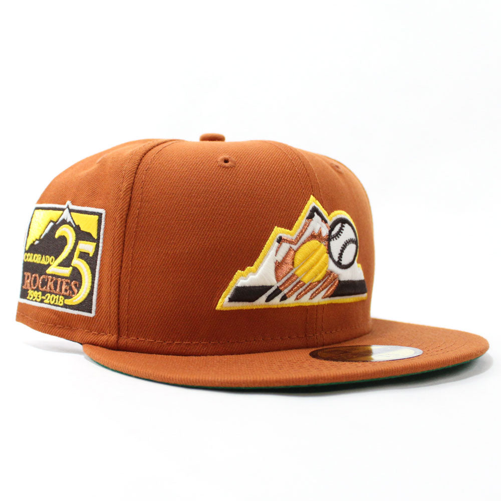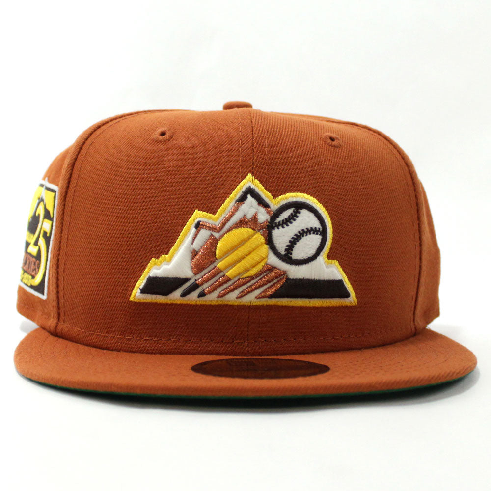Colorado Rockies 25th Anniversary New Era 59Fifty Fitted Hat (Glow in the Dark Rust Orange Yellow Copper Green Under Brim)