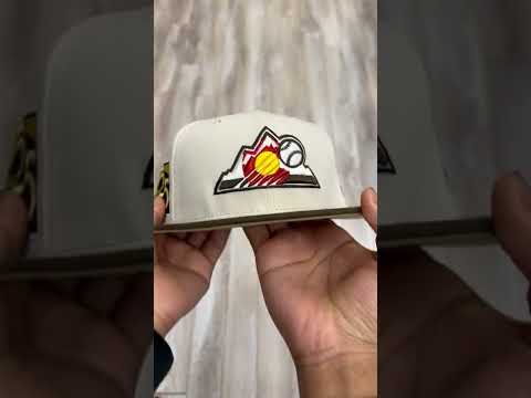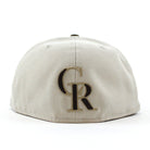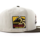 Colorado Rockies 25th Anniversary New Era 59Fifty Fitted Hat in Stone Gray with Walnut Visor and Khaki Under Brim.