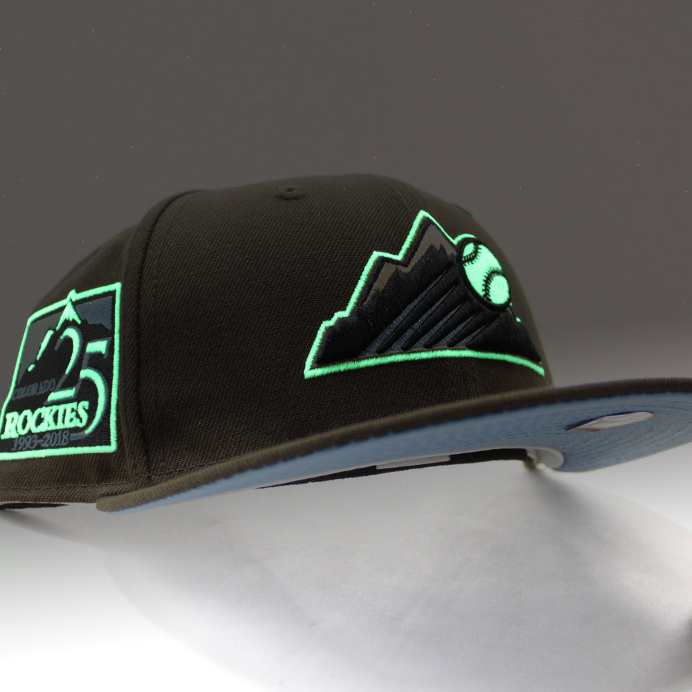 Colorado Rockies 25th Anniversary New Era 59Fifty Fitted Hat (GITD Walnut Sky Blue Under Brim)