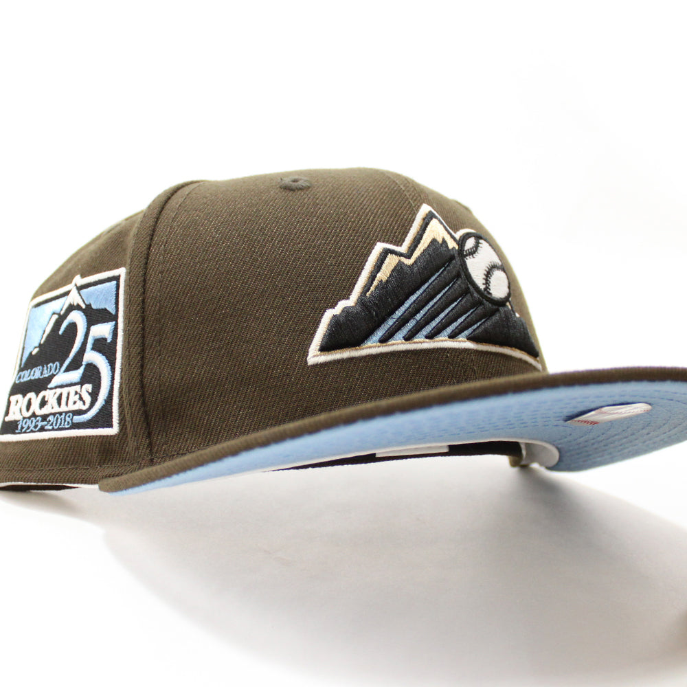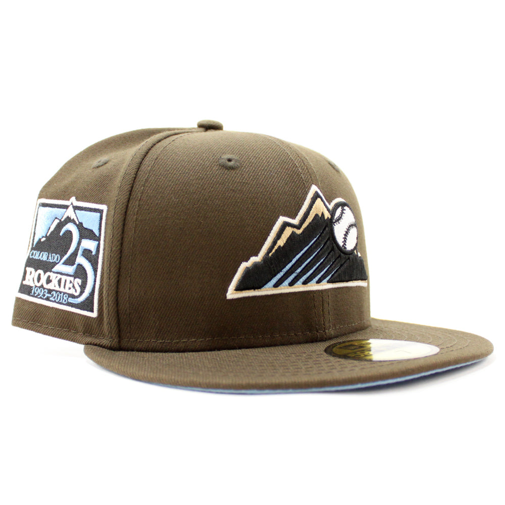 Colorado Rockies 25th  Anniversary New Era 59Fifty Fitted Hat in Walnut with Sky Blue Under Brim
