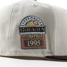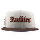 Colorado Rockies Coors Field New Era 59Fifty Fitted Cap in Stone Burnt Wood Brown and Pink Under Brim.Β