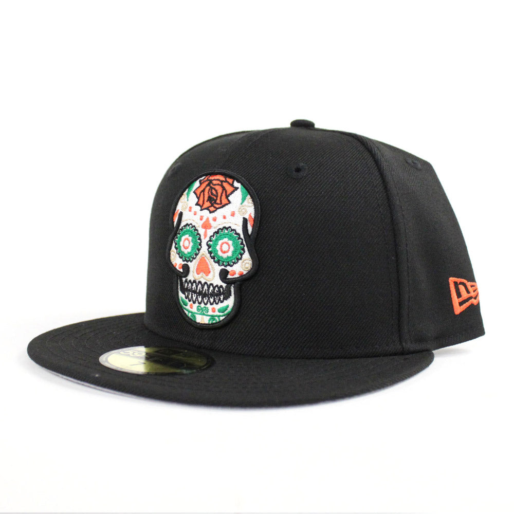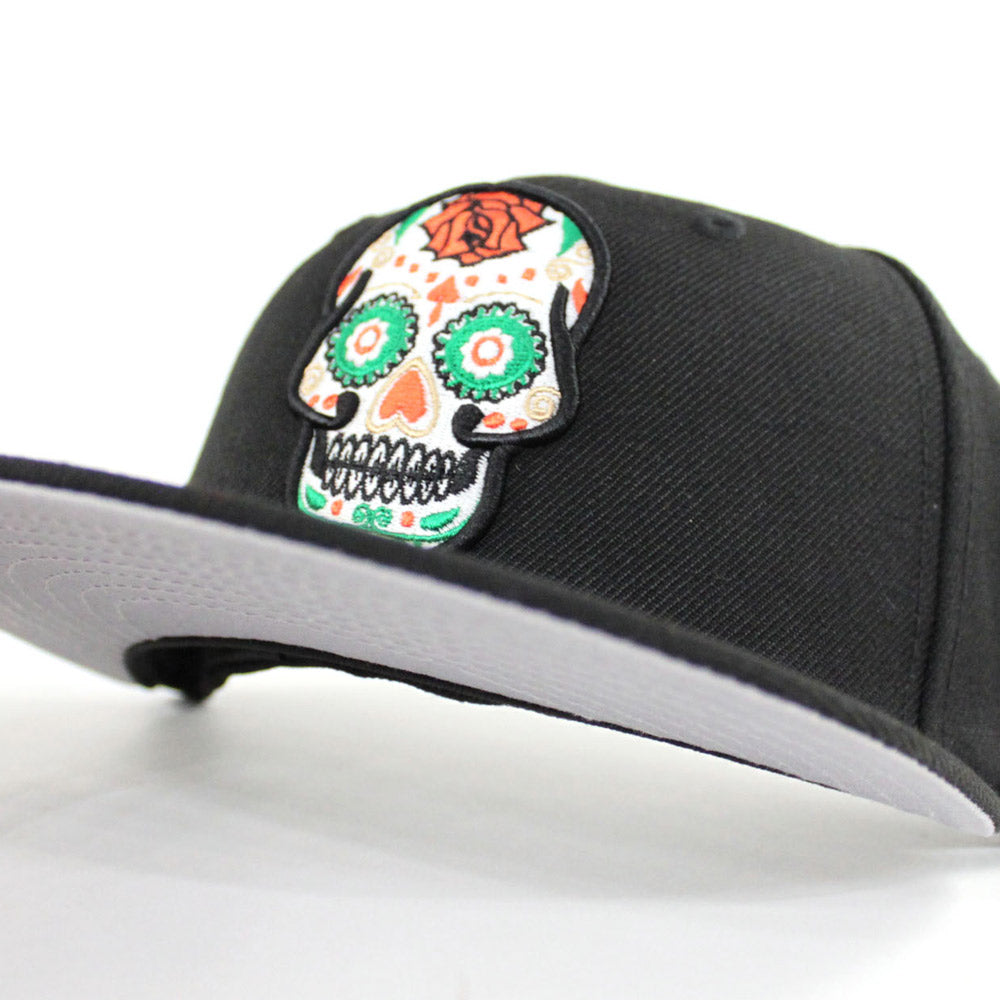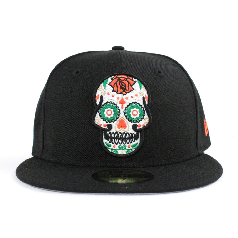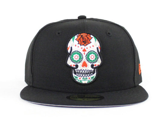 Day of the Dead SUGAR SKULL 59Fifty New Era Fitted Hat (Black Glow in the Dark Gray Under Brim)