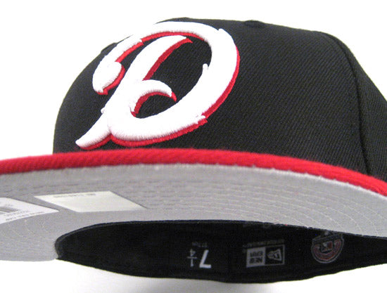 The Daytona Cubs existed from 1993-2014 when they were the Class A-Advanced affiliate of the Chicago Cubs. The team rebranded to this 'D' Script in 2012. The logo features a cursive 'D' with a fur texture around it, its white based with a small hint of red around the outline. The New Era 59FIFTY Fitted Hat itself is black based and has a red visor and button, to finish off the look is grey under visor. Black and Red is a classic color combo and pairs up with any outfit. Great match for the Nike Air Jordan 1.