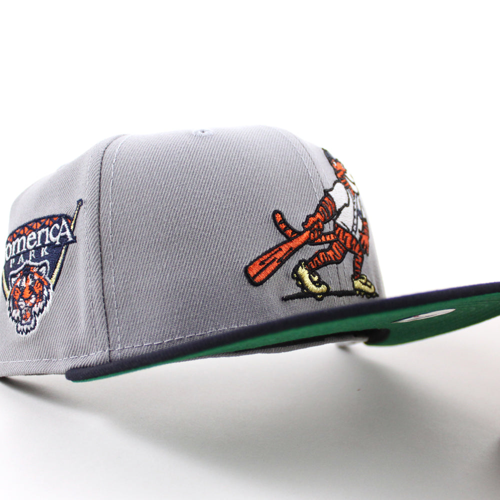 Detroit Tigers Mascot Comrica Park New Era 59Fifty Fitted Hat (Gray Navy Green Under Brim)