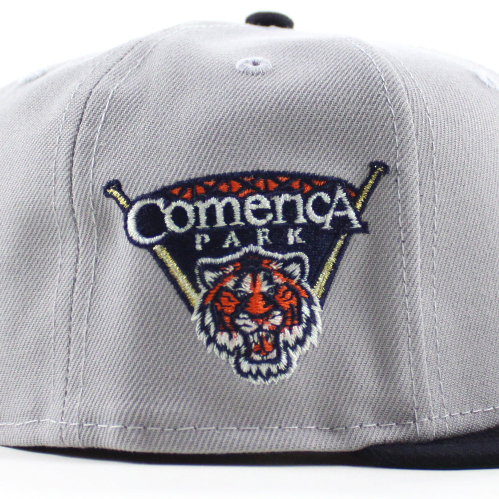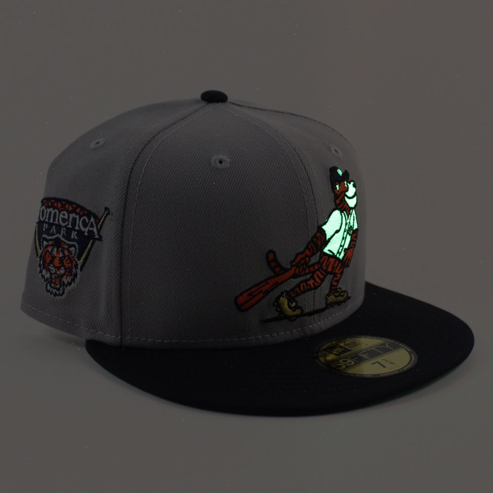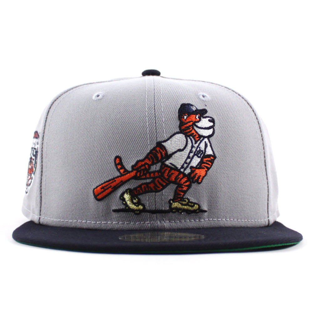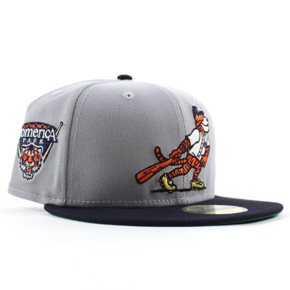 Detroit Tigers Mascot Comrica Park New Era 59Fifty Fitted Cap in Gray, Navy and Green Under Brim.