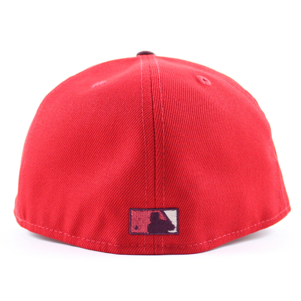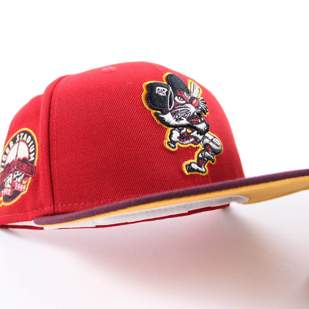 Detroit Tigers Tiger Stadium New Era 59Fifty Fitted Hat in Red, Maroon & Orange Green Under Brim.