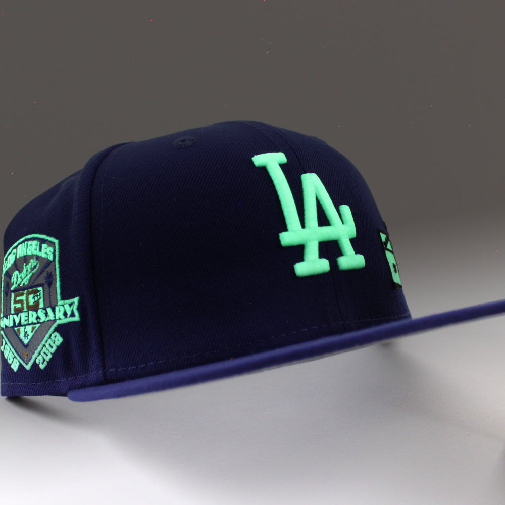 Dice Los Angeles Dodgers 50th Anniversary New Era 59Fifty Fitted Hat (GITD Royal Blue Gray Under Brim)