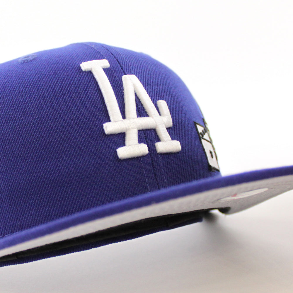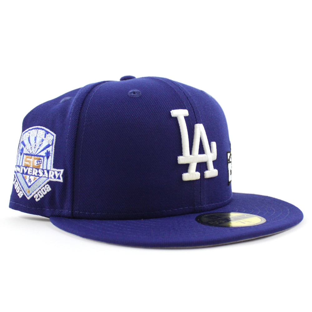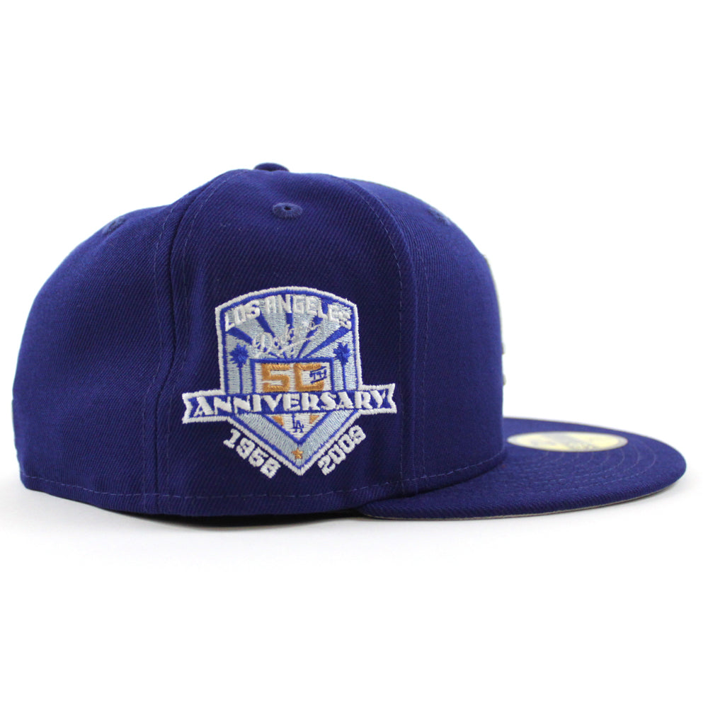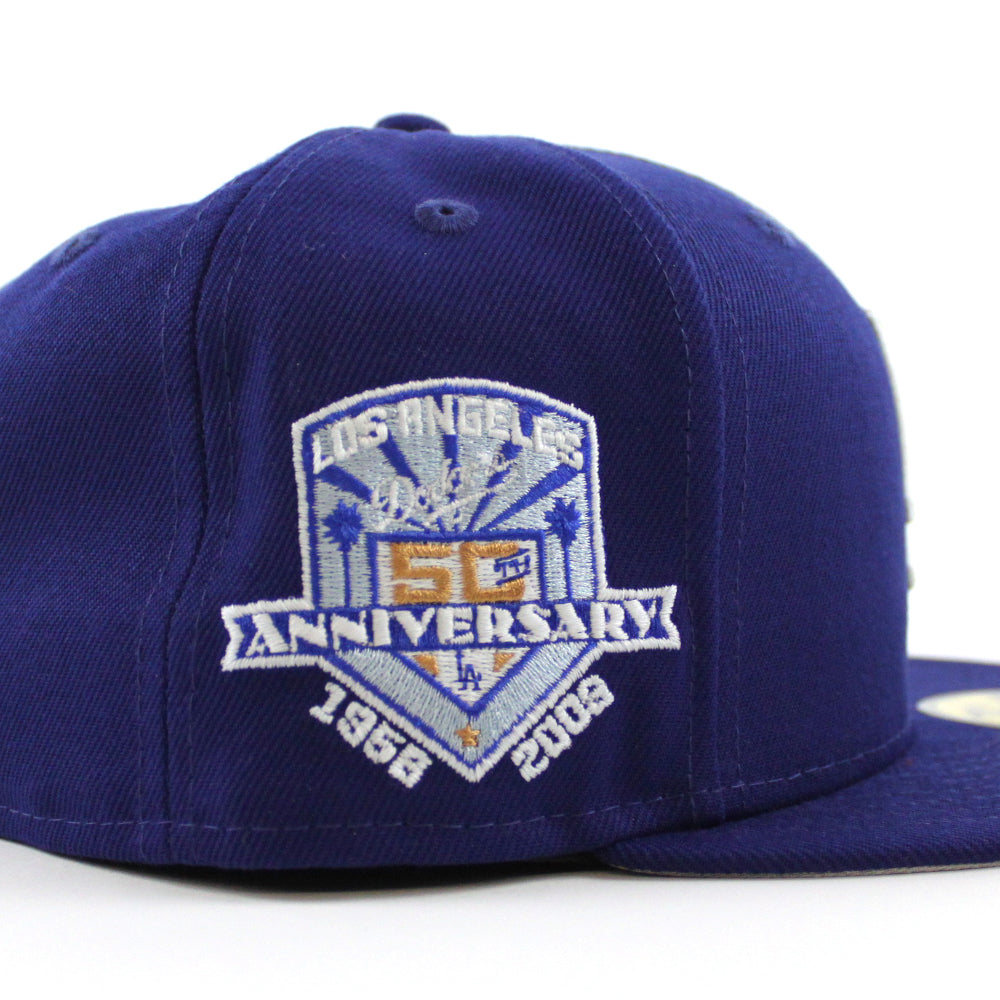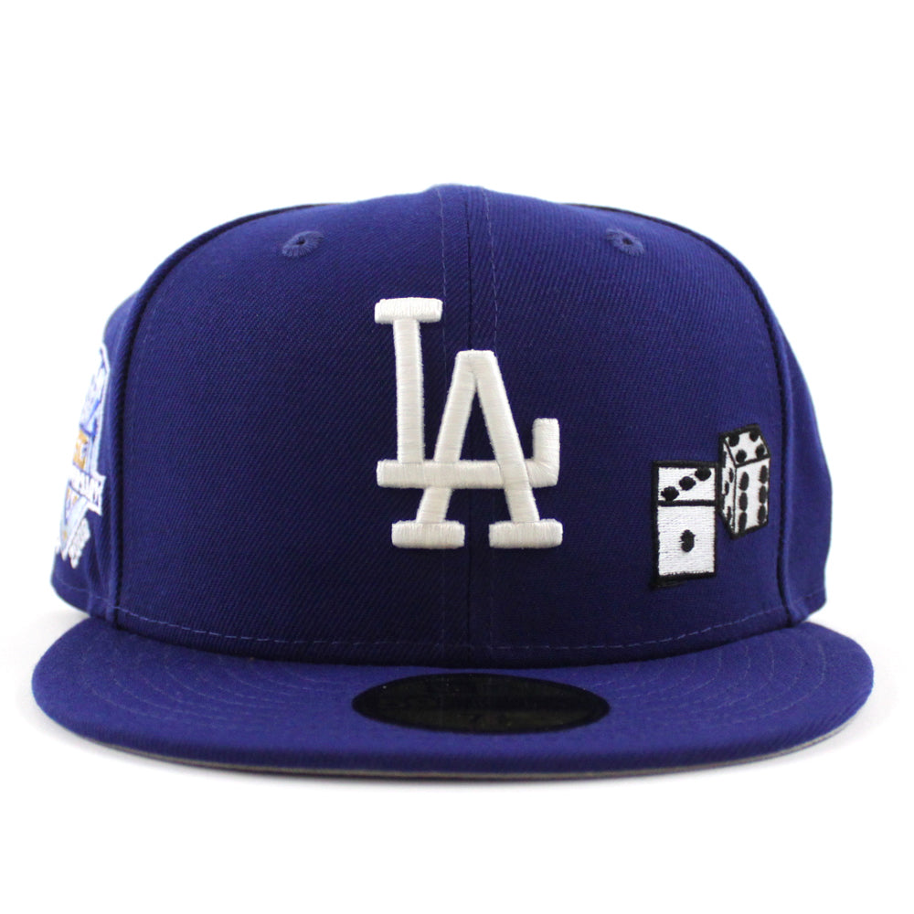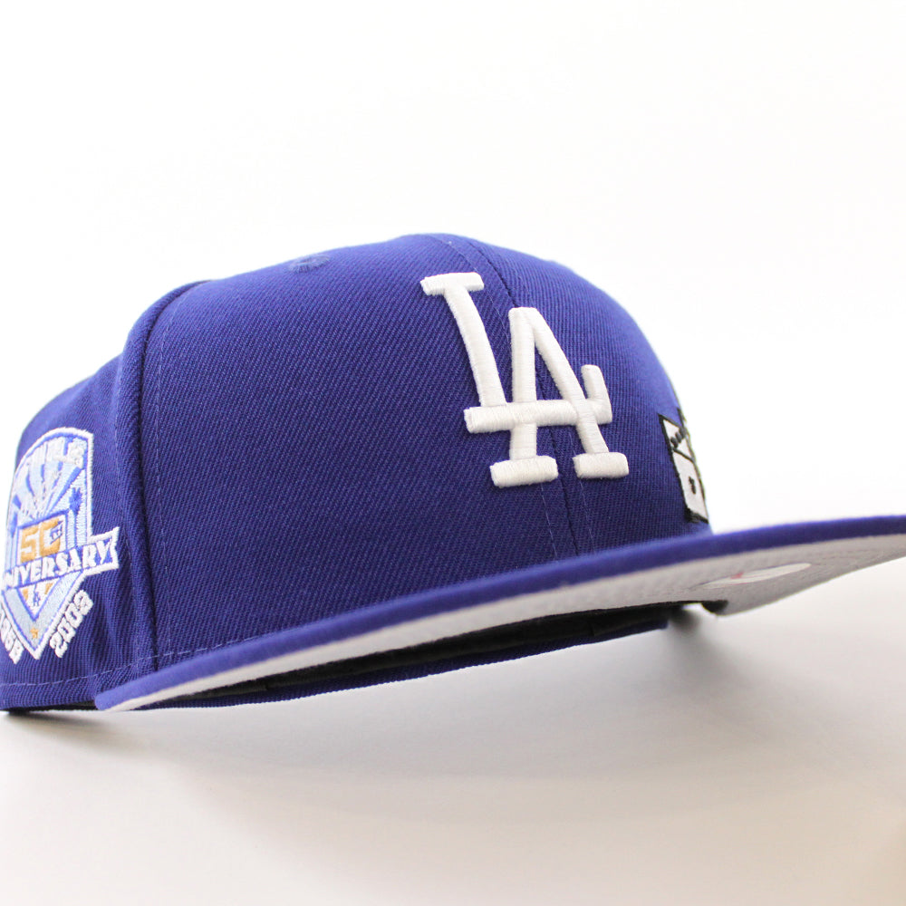 Dice Los Angeles Dodgers 50th Anniversary New Era 59Fifty Fitted Hat in Royal Blue & Grey Under Brim.