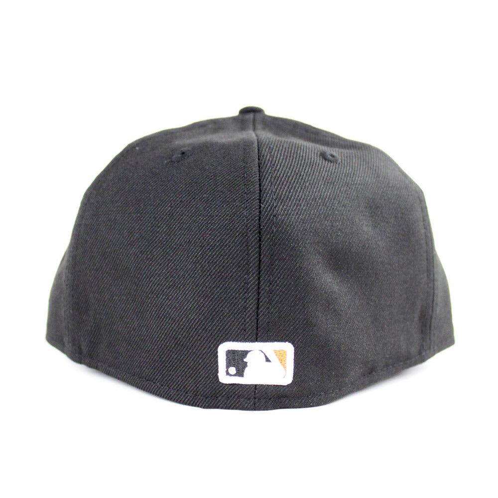 Iconic Digital San Francisco Giants New Era fitted hat done up in Black and Orange with a Gray under brim.