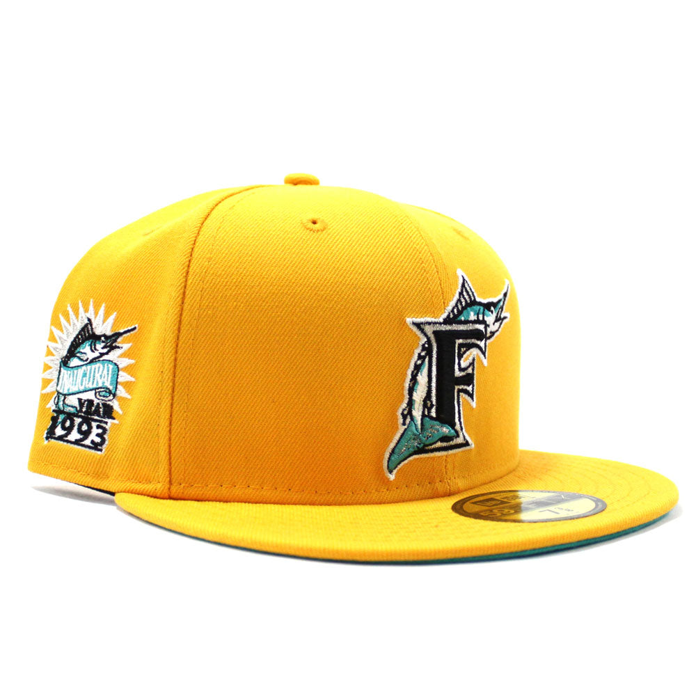 Florida Marlins 1993 INAUGURAL SEASON New Era 59Fifty Fitted Hat (Gold Teal Under brim)
