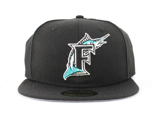 We brought back a classic!!  Florida Marlins 1999 Home New Era 59Fifty Fitted Hat is Black and Gray Under Brim. Also 2000 - 2006 Game Hat. Now available online & in-store!