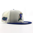 Florida Marlins x Florida Gators New Era 59Fifty Fitted Hat in Chrome White, Royal Blue and Green Under brim.