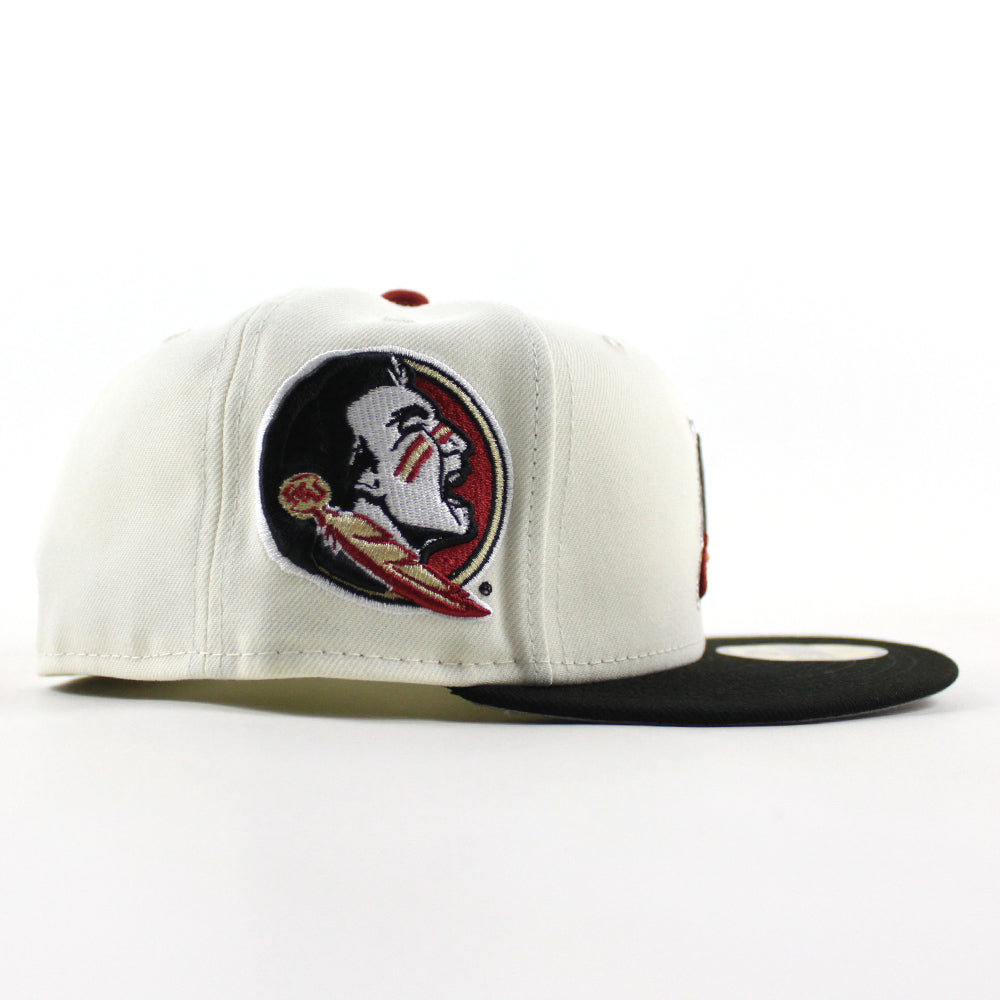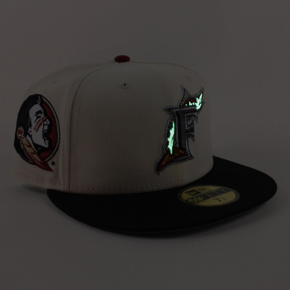 Florida Marlins x Florida State University Seminoles New Era 59Fifty Fitted Hat in Chrome White, Black and a Gray Under brim.
