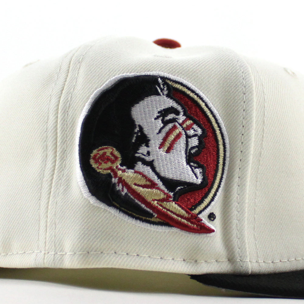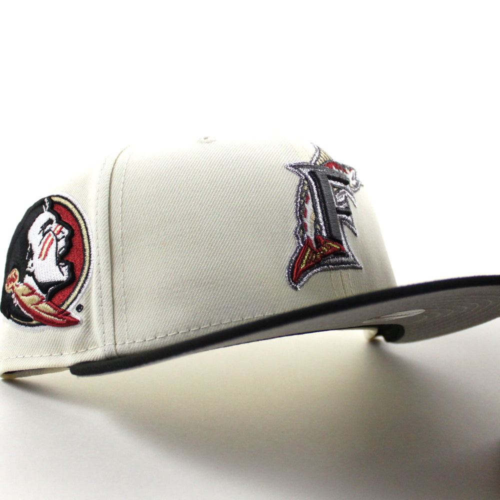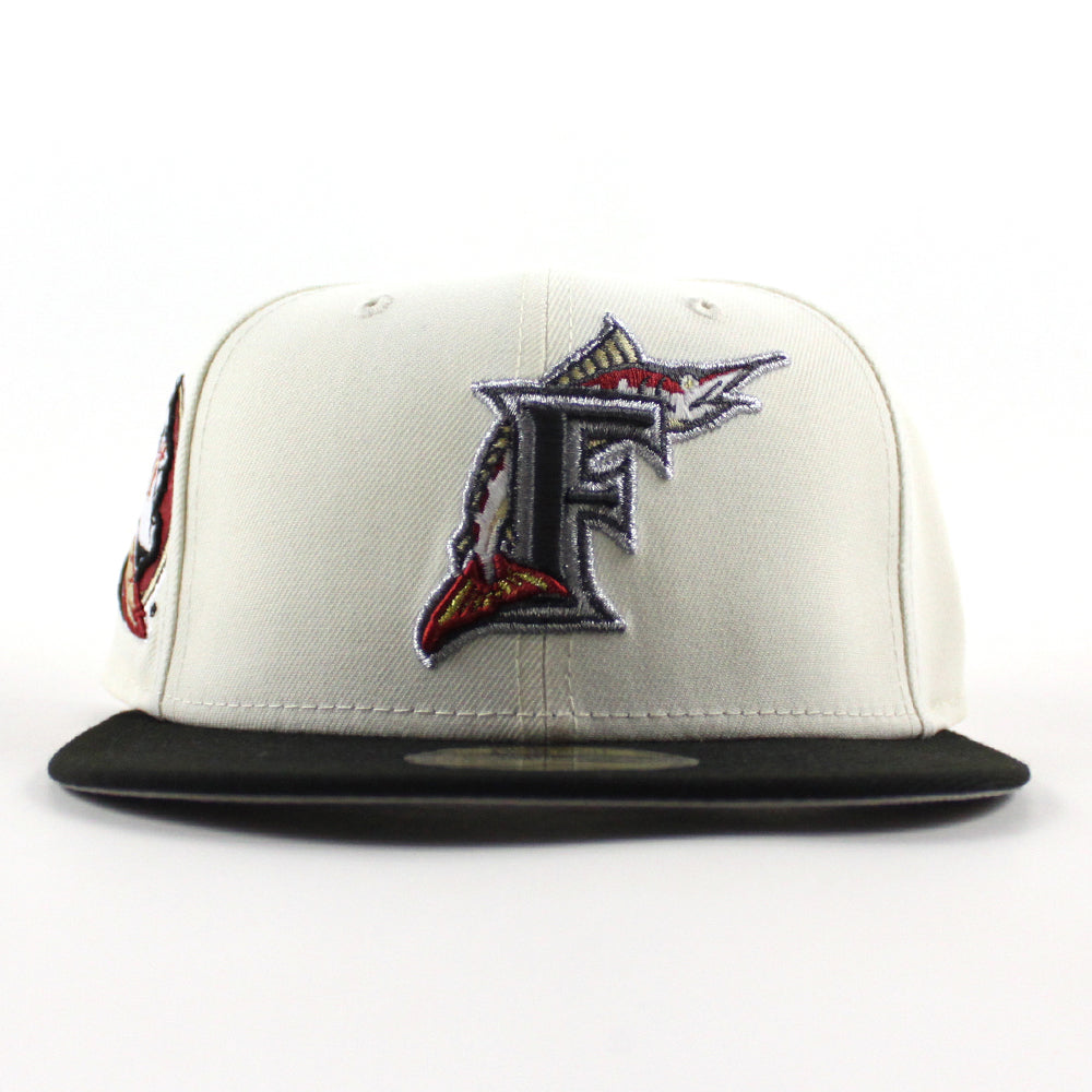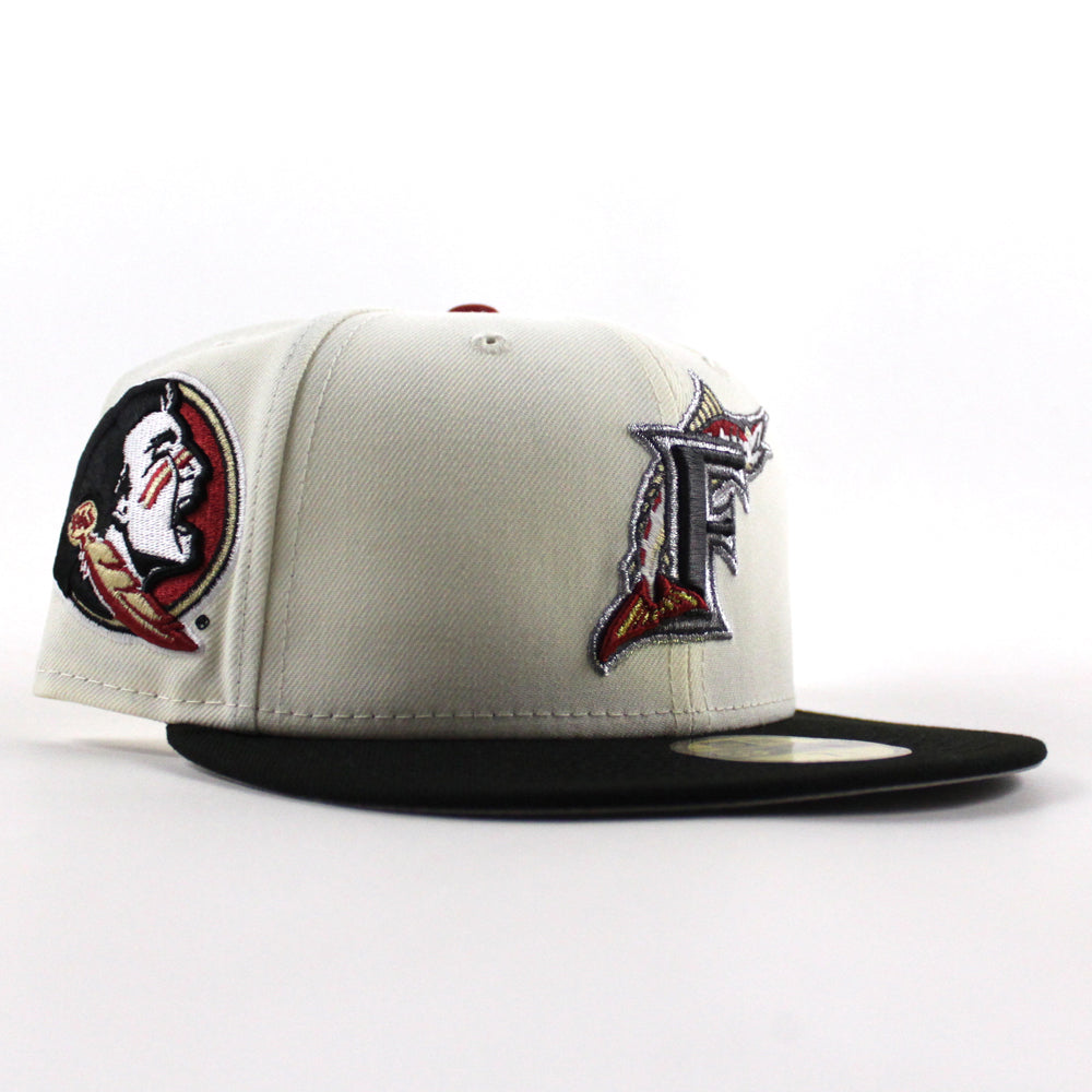 Florida Marlins x Florida State University Seminoles New Era 59Fifty Fitted Hat (Chrome White Black Gray Under brim)