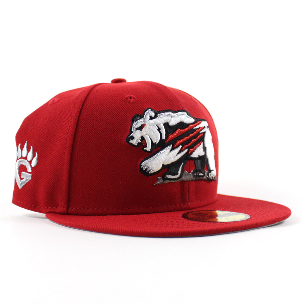 Fresno Grizzlies Grizzlies Paw Patch New Era 59Fifty Fitted Cap in Red and Gray Under Brim.