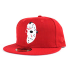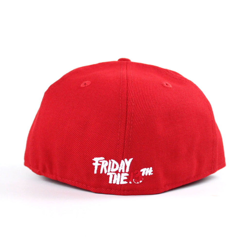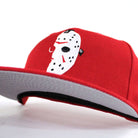 Friday the 13th Jason Head New Era 59Fifty Fitted Hat in Red and Gray Under Brim.