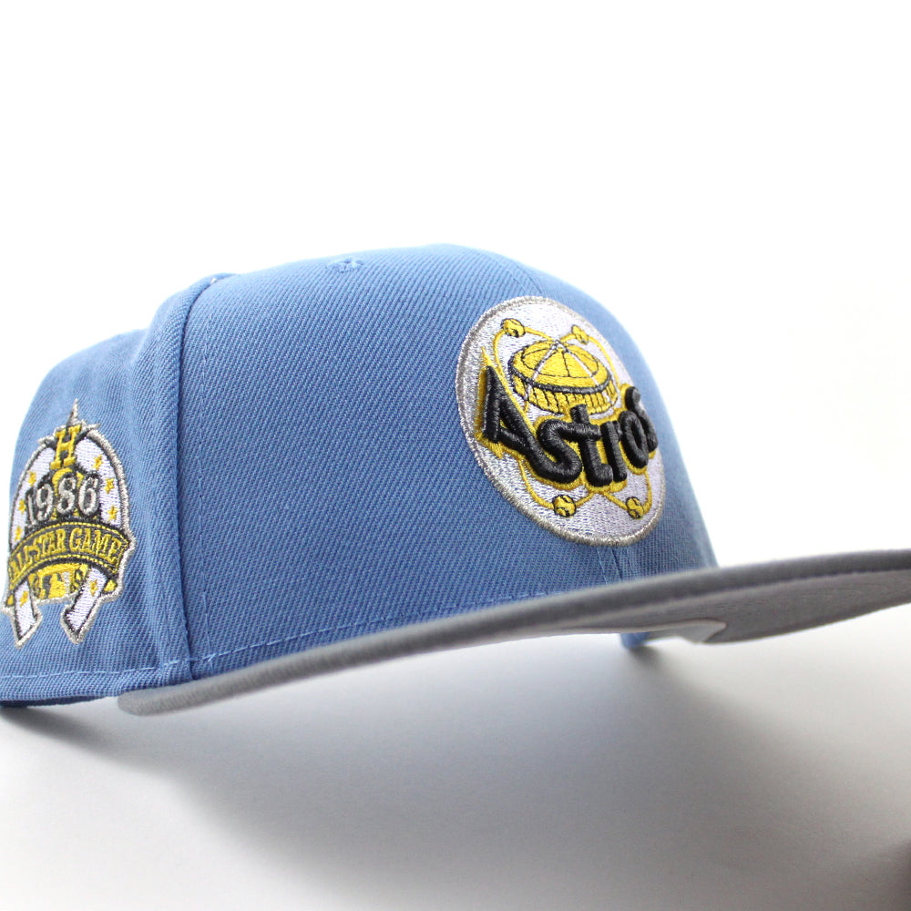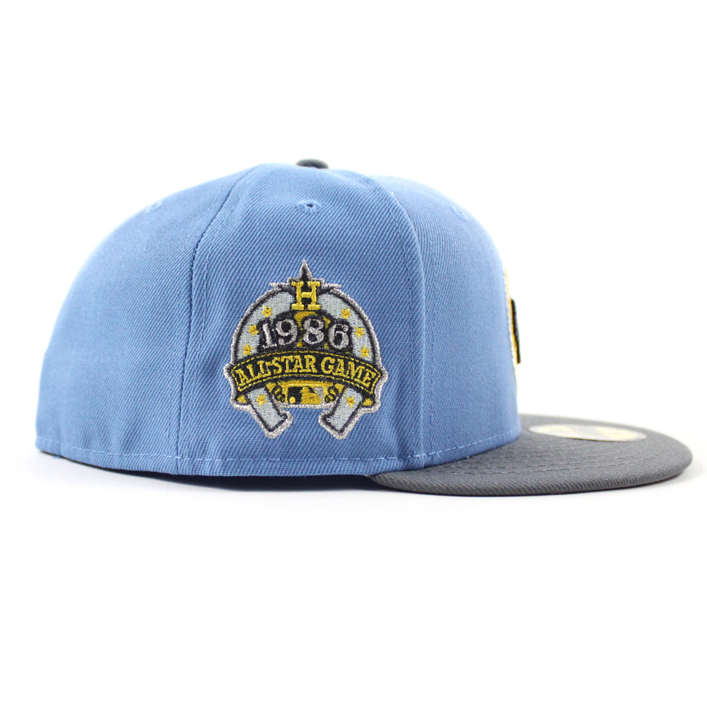 Houston Astros 1986 All Star Game New Era 59Fifty Fitted Hat in Sky Blue, Storm Gray and Gray Under Brim.