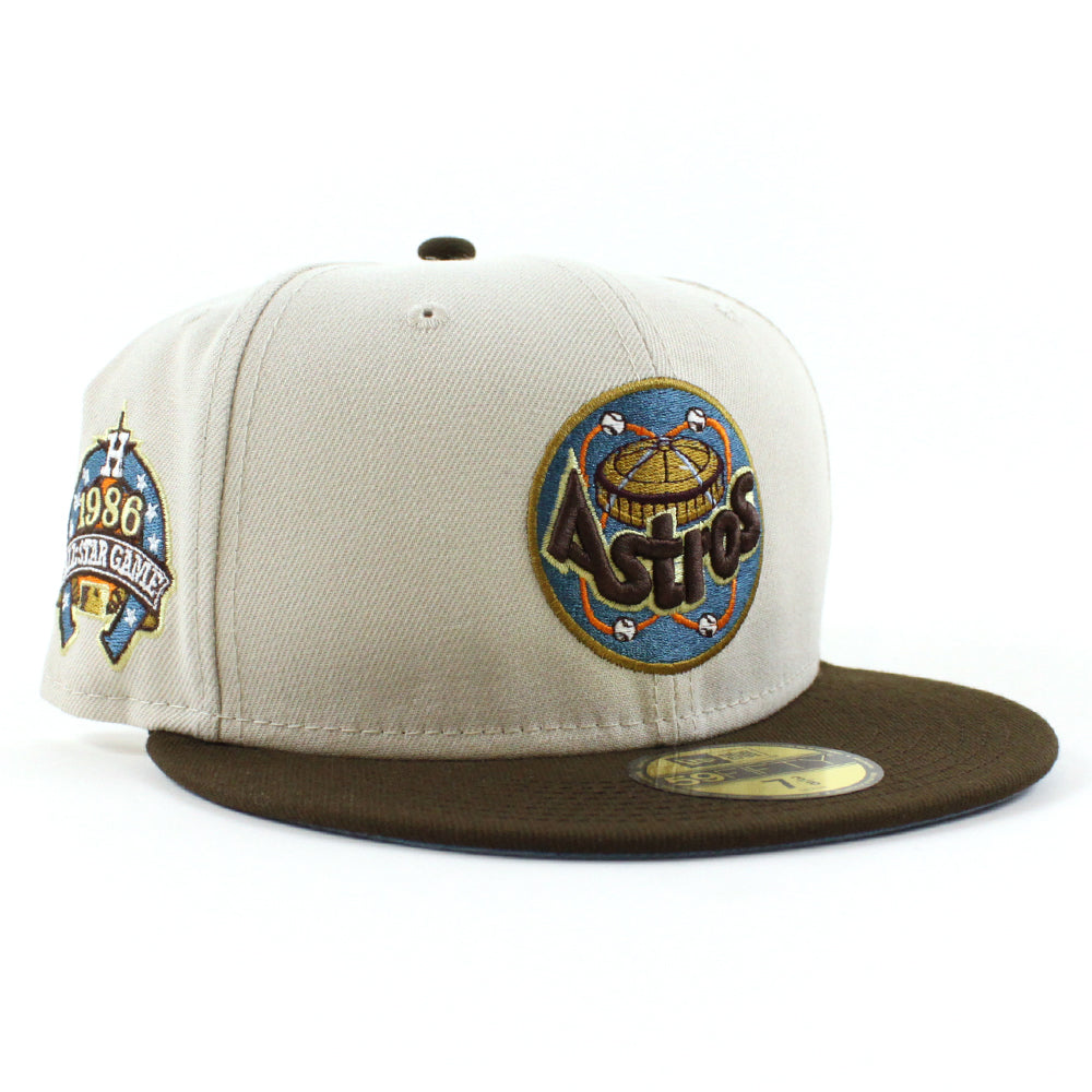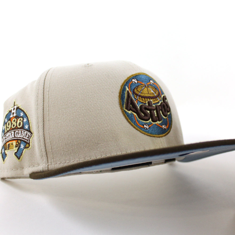 Houston Astros 1986 All Star Game New Era 59Fifty Fitted Cap in Stone, Walnut, and Sky Blue Under Brim.