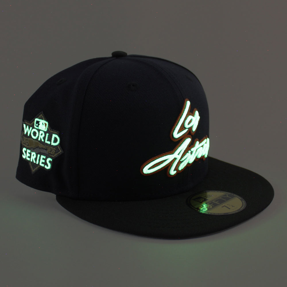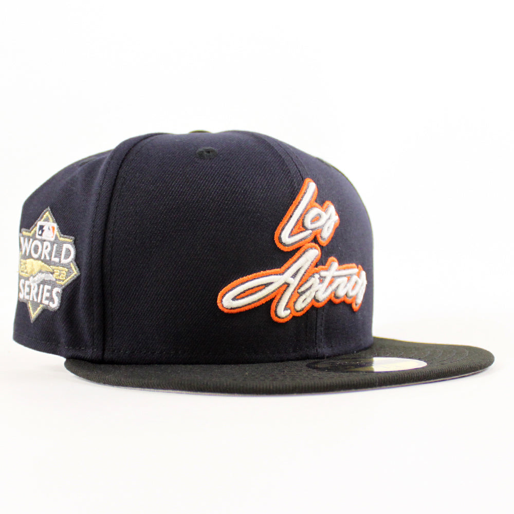 Houston Los Astro 2023 World Series New Era 59Fifty Fitted Hat in Navy, Black and Gray Under Brim.
