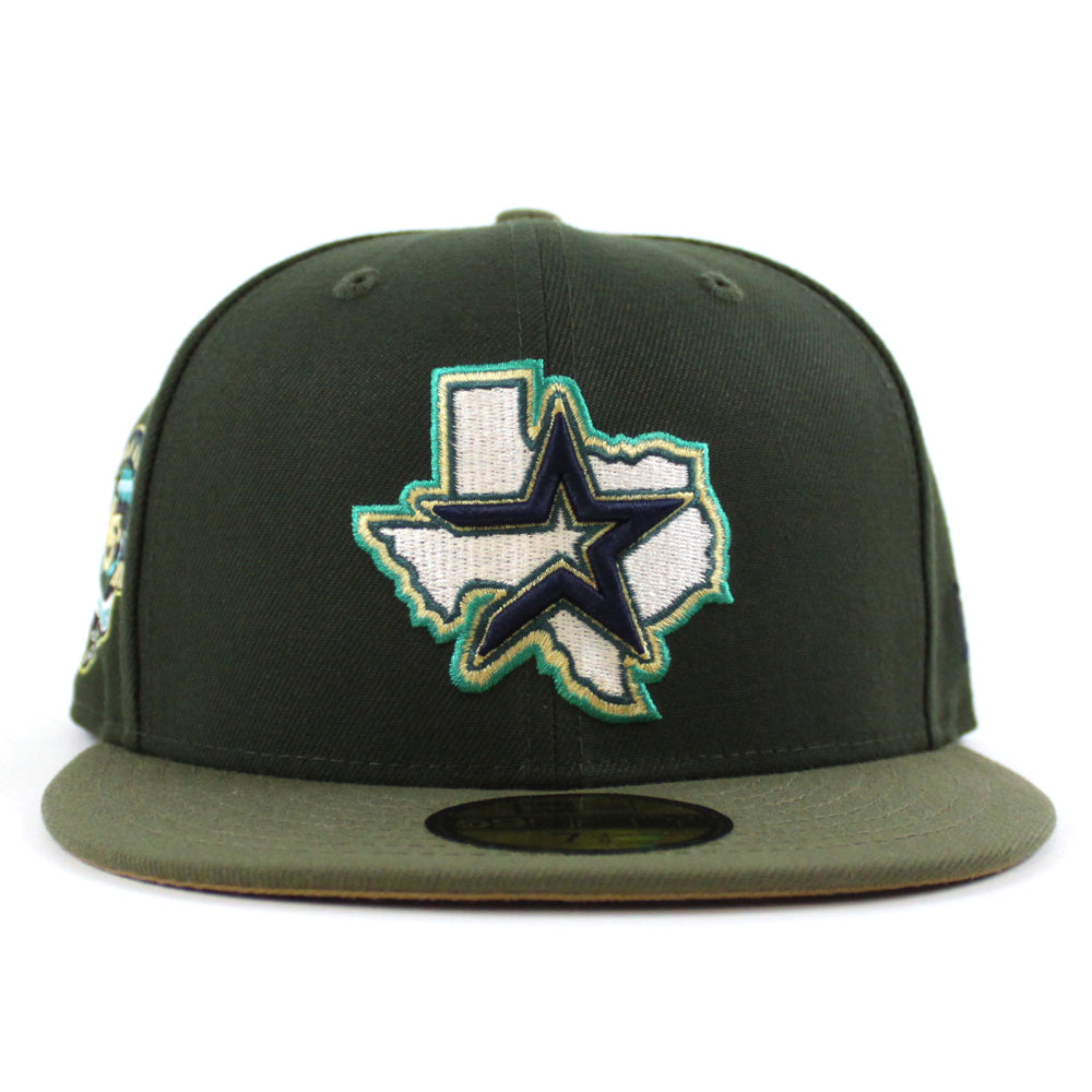 Houston Astros 45th Anniversary New Era 59Fifty Fitted Cap in Seaweed, Olive and Khaki Under Brim.