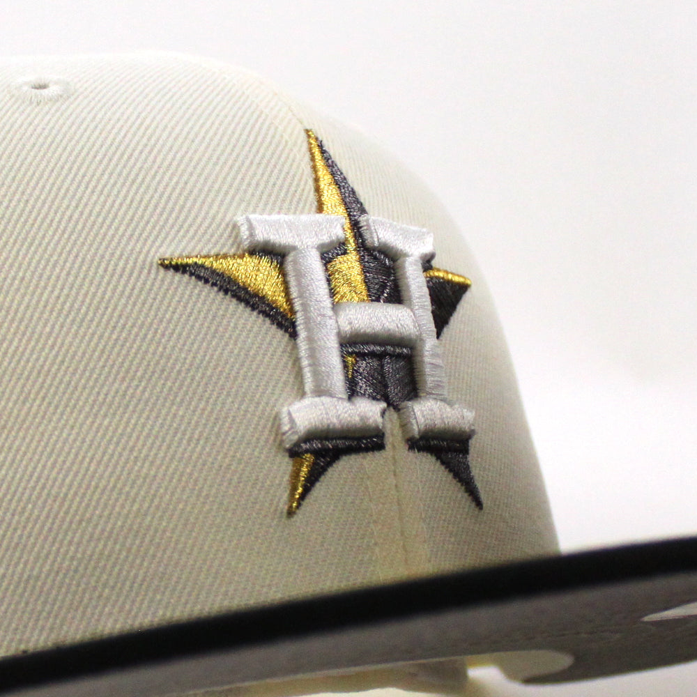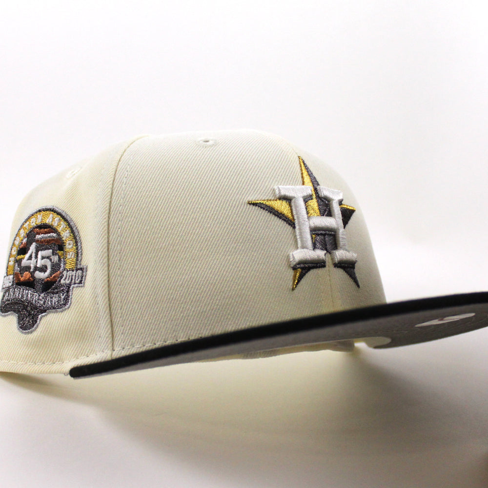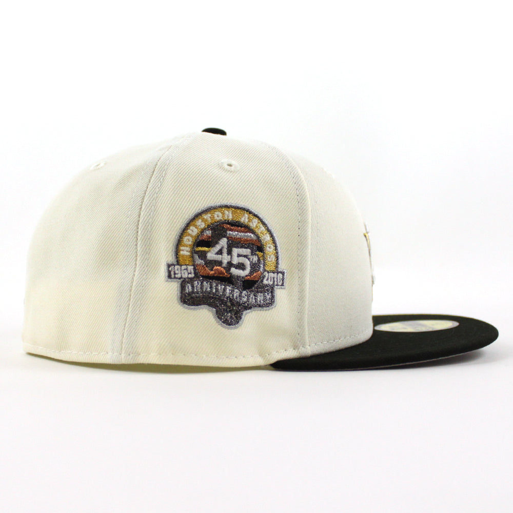Houston Astros 45th Anniversary New Era 59Fifty Fitted Cap in Chrome White, Black and Gray Under Brim.