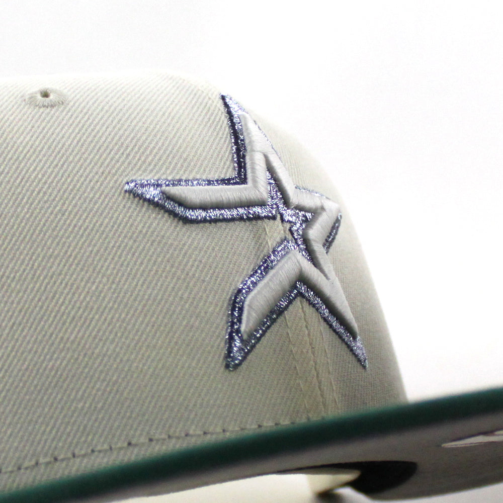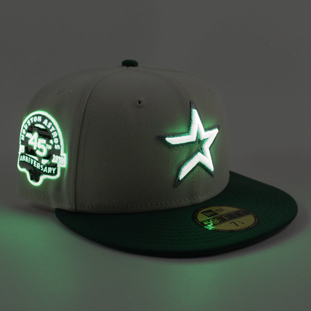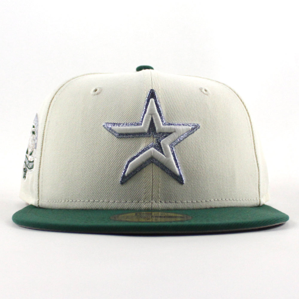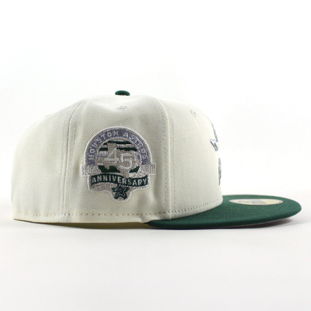 Houston Astros 45th Anniversary New Era 59Fifty Fitted Cap in Chrome White, Emerald Green and Gray Under Brim.