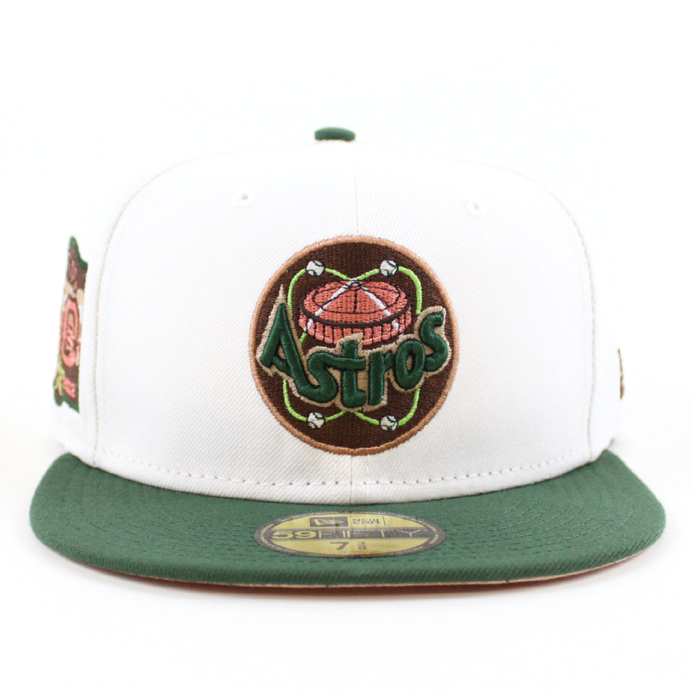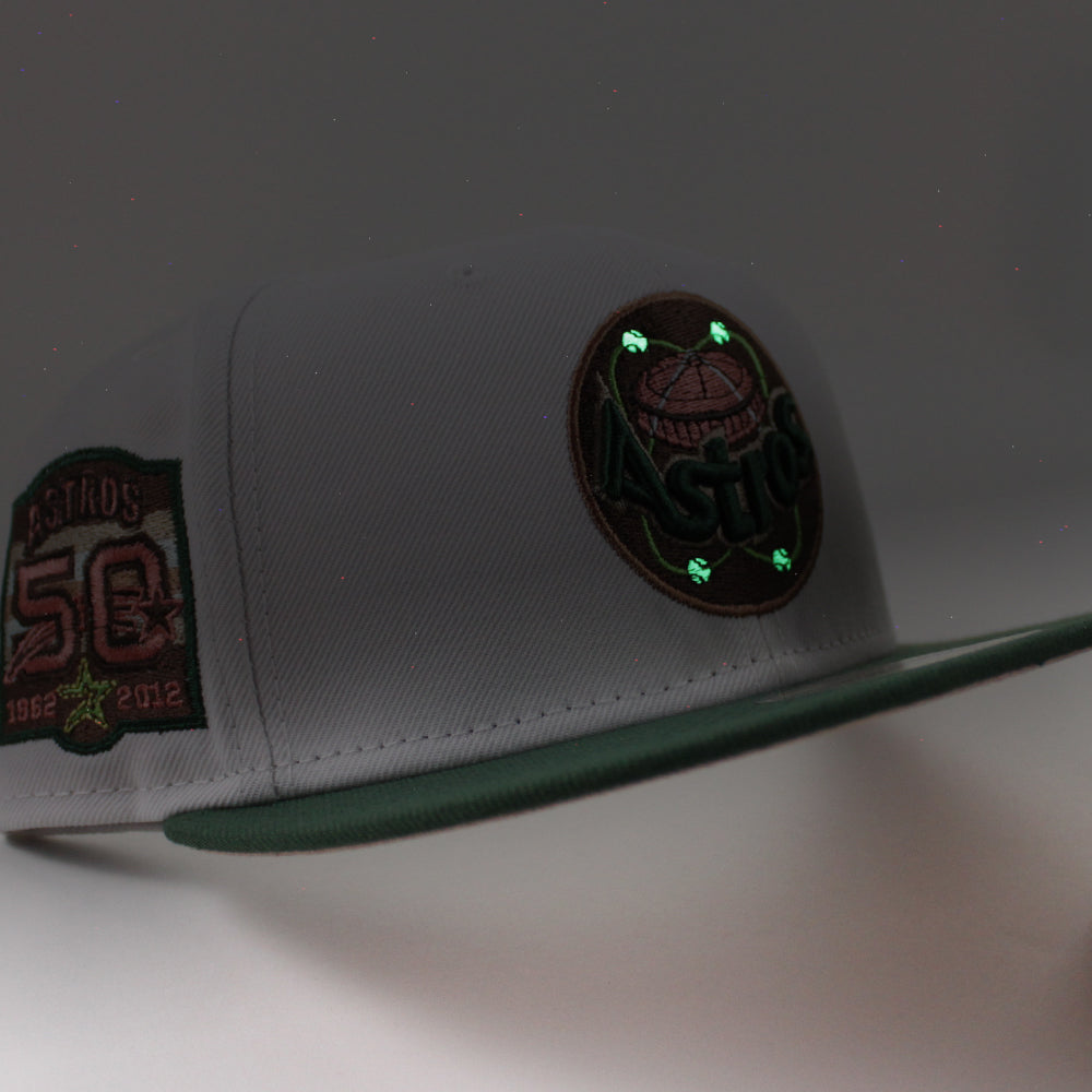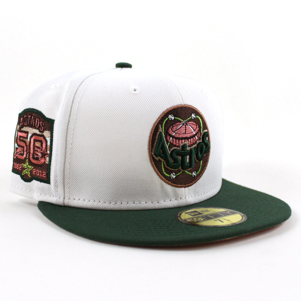 Houston Astros 50th Anniversary 1962-2012 New Era 59Fifty Fitted Cap in White, Mountain Pine Green and Blush Sky Under Brim.