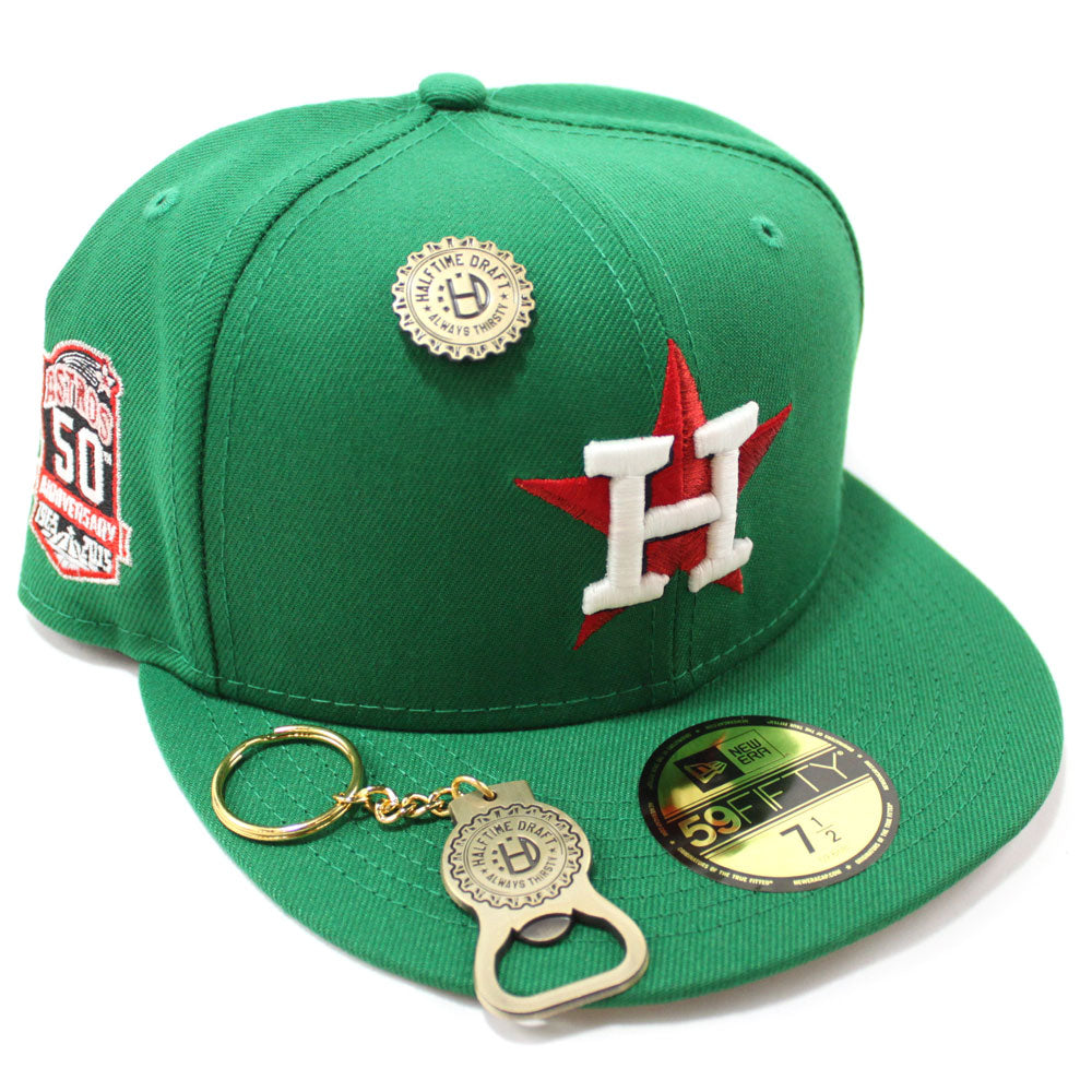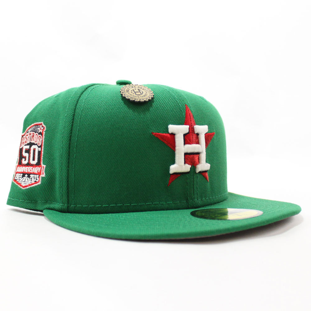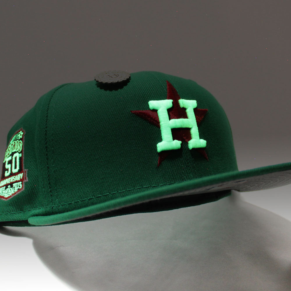 Houston Astros  50th Anniversary New Era 59Fifty Fitted Hat in Kelly & 3M Under Brim.  Logo: Glow in the Dark