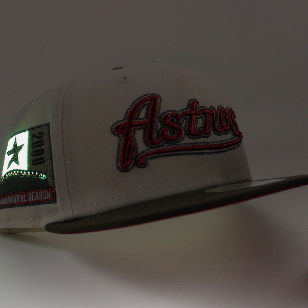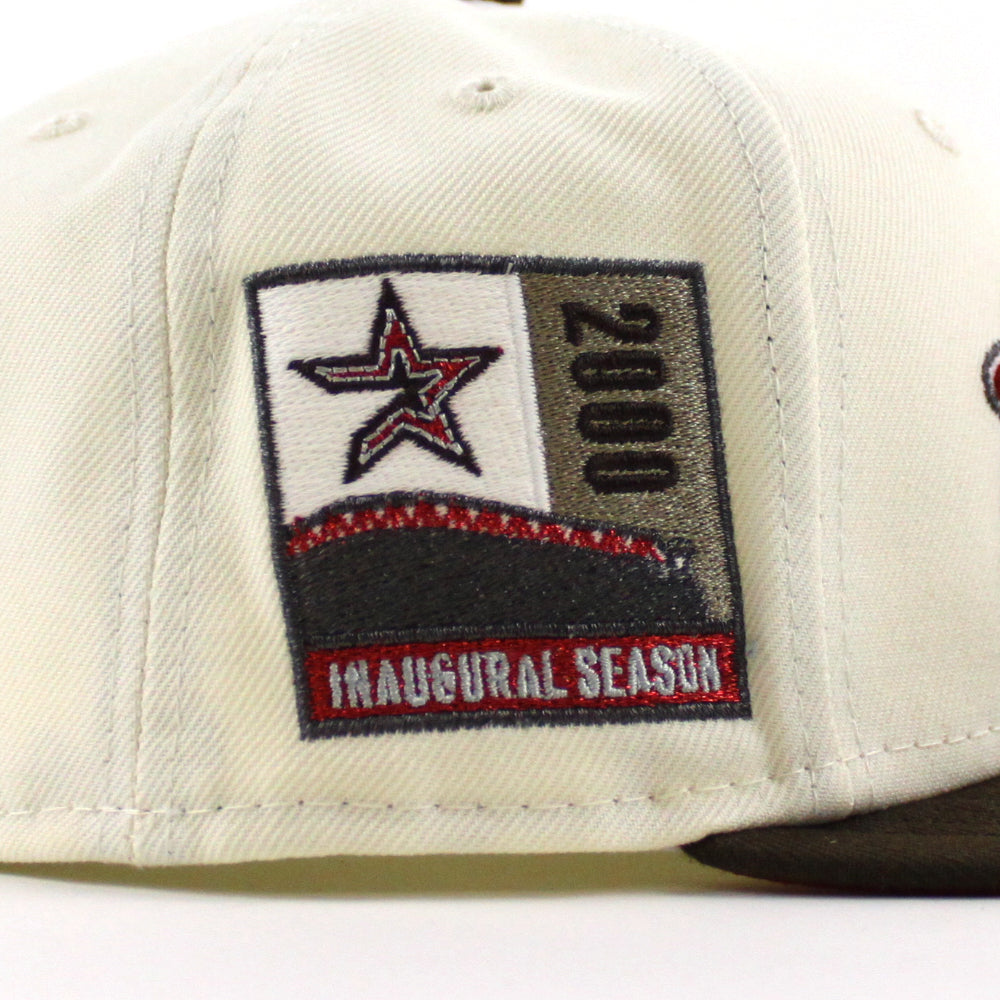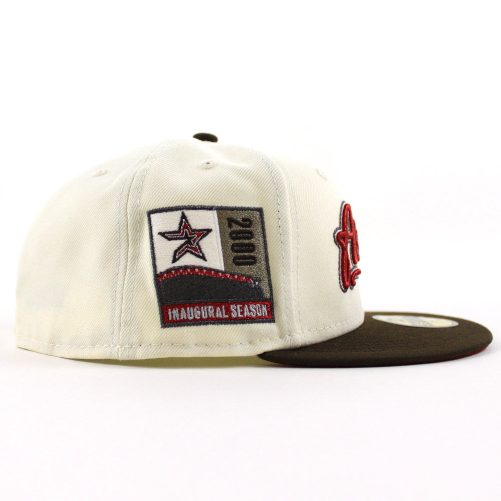 Houston Astros Inaugural Season New Era 59Fifty Fitted Cap in Chrome, Walnut and Scarlet Under Brim.