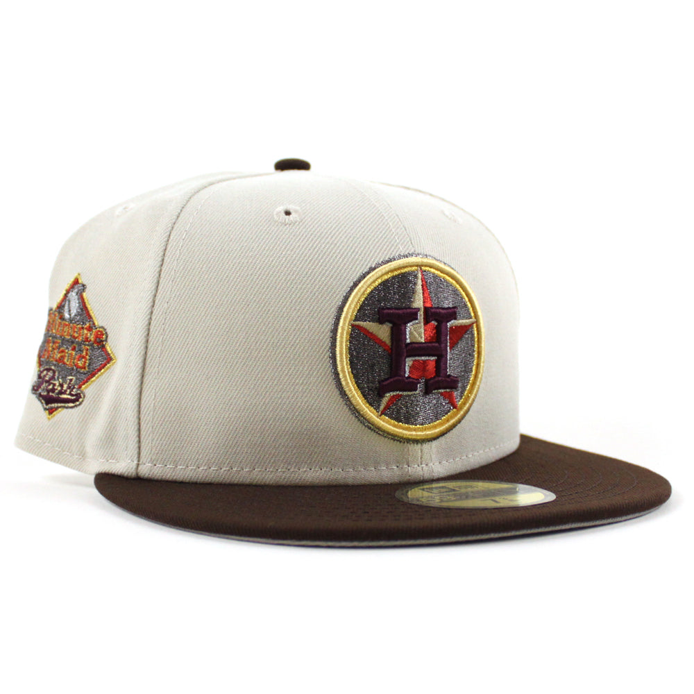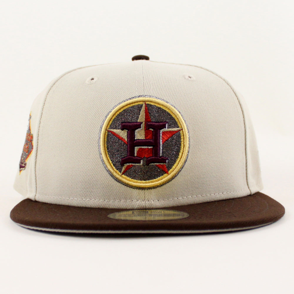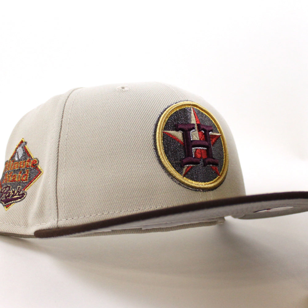 Houston Astros Minute Maid Park New Era 59Fifty Fitted Cap in Stone, Burnt Wood and Gray Under Brim with Metallic thread in the logo.