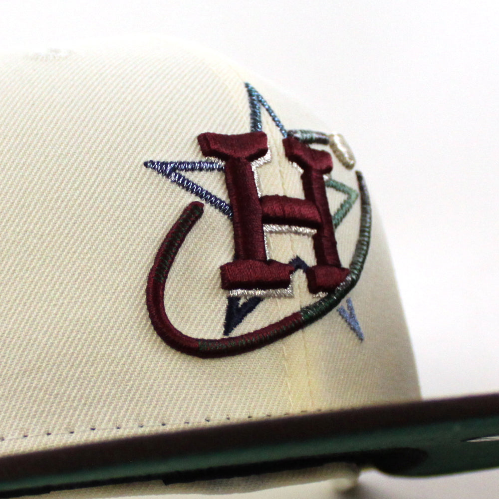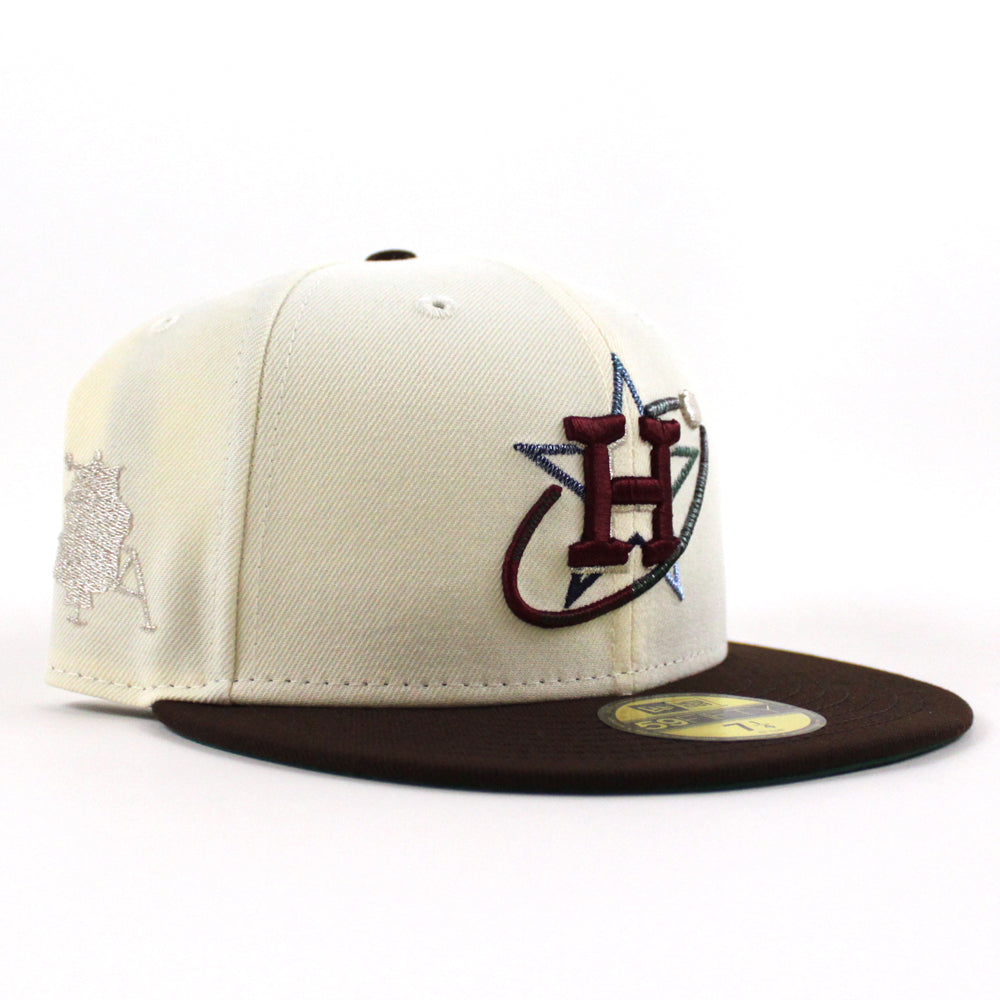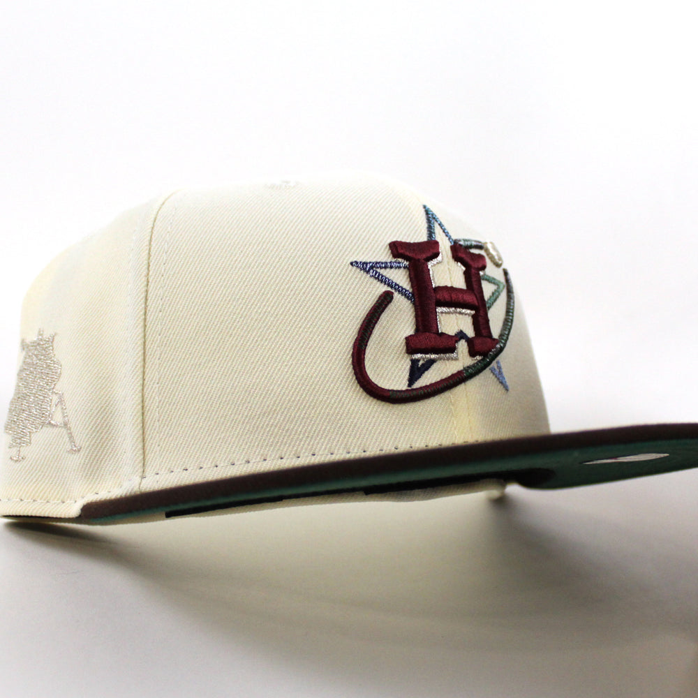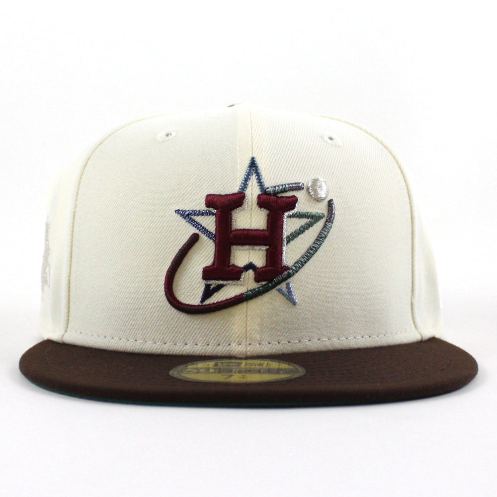 Houston Astros Rover New Era 59Fifty Fitted Cap in Chrome White, Burnt Wood and Green Under Brim.