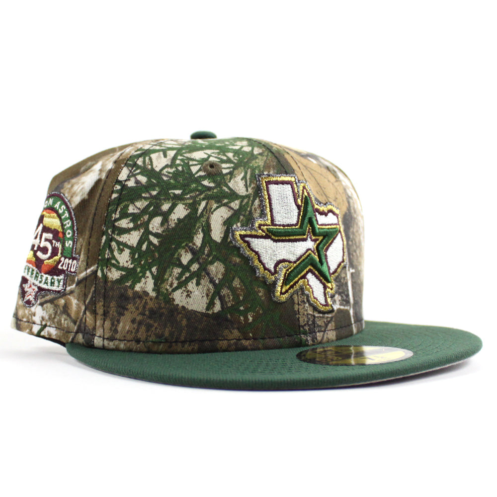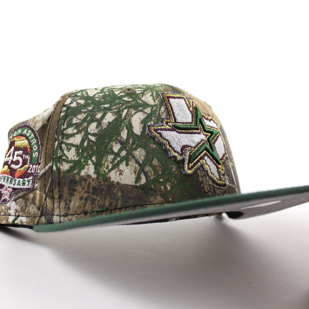 Houston Astros Silver Anniversary 45th Anniversary New Era 59Fifty Fitted Hat in Real Tree, Mountain Green and Gray Under Brim.