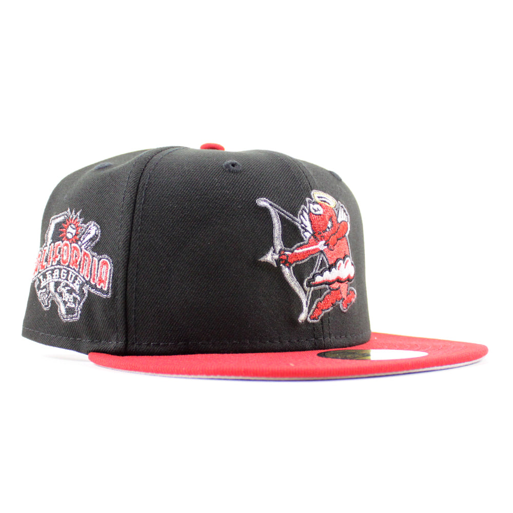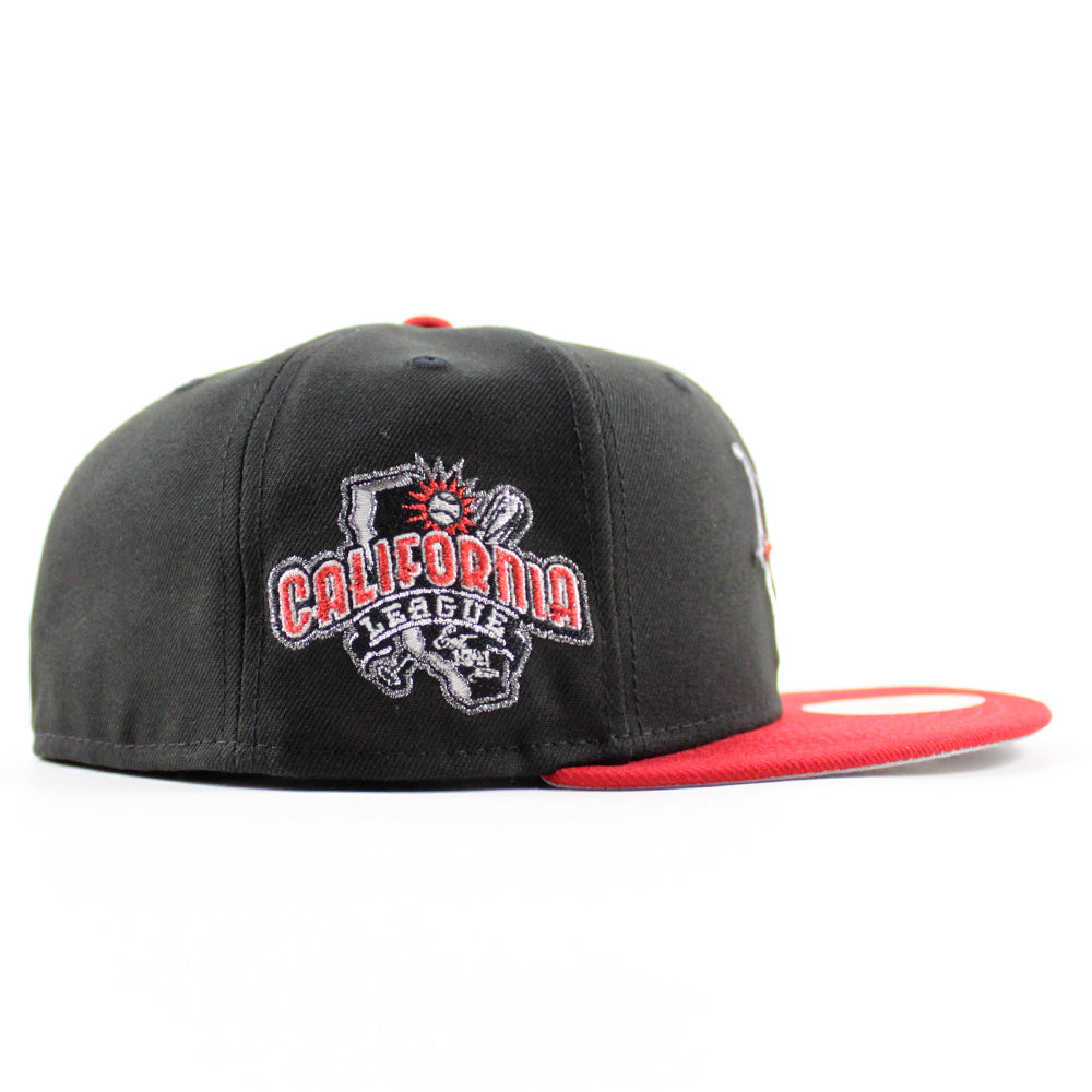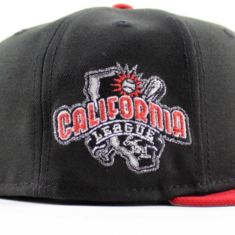 INLAND EMPIRE 66ERS California League Patch New Era 59Fifty Fitted Hat in Black, Scarlet Red & Gray Under Brim