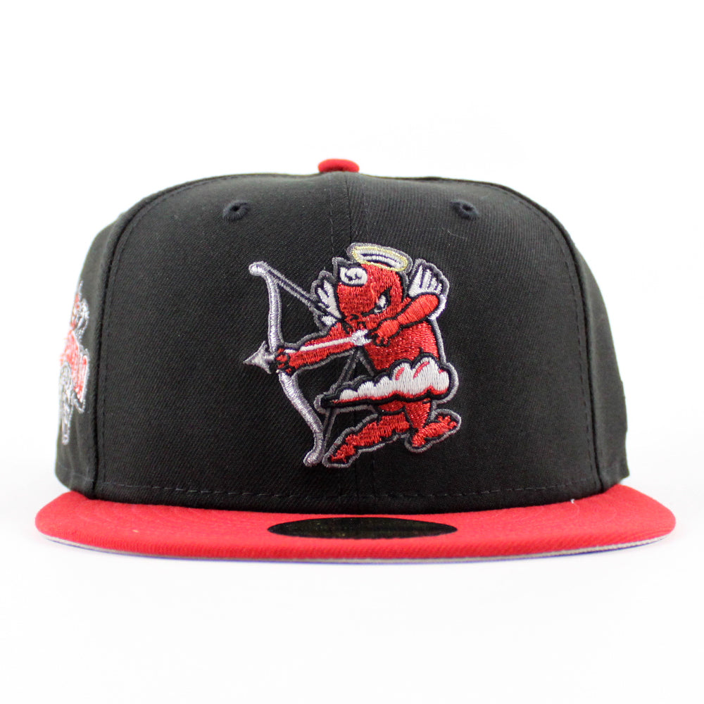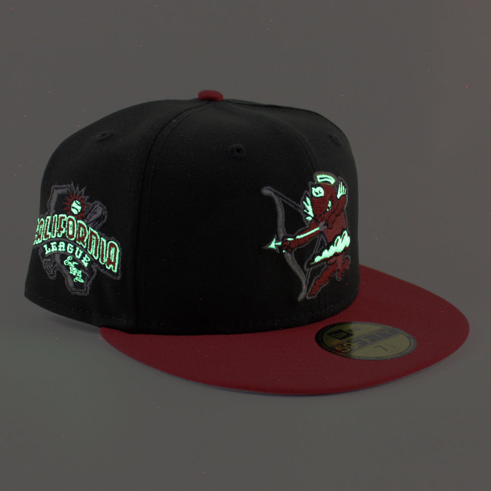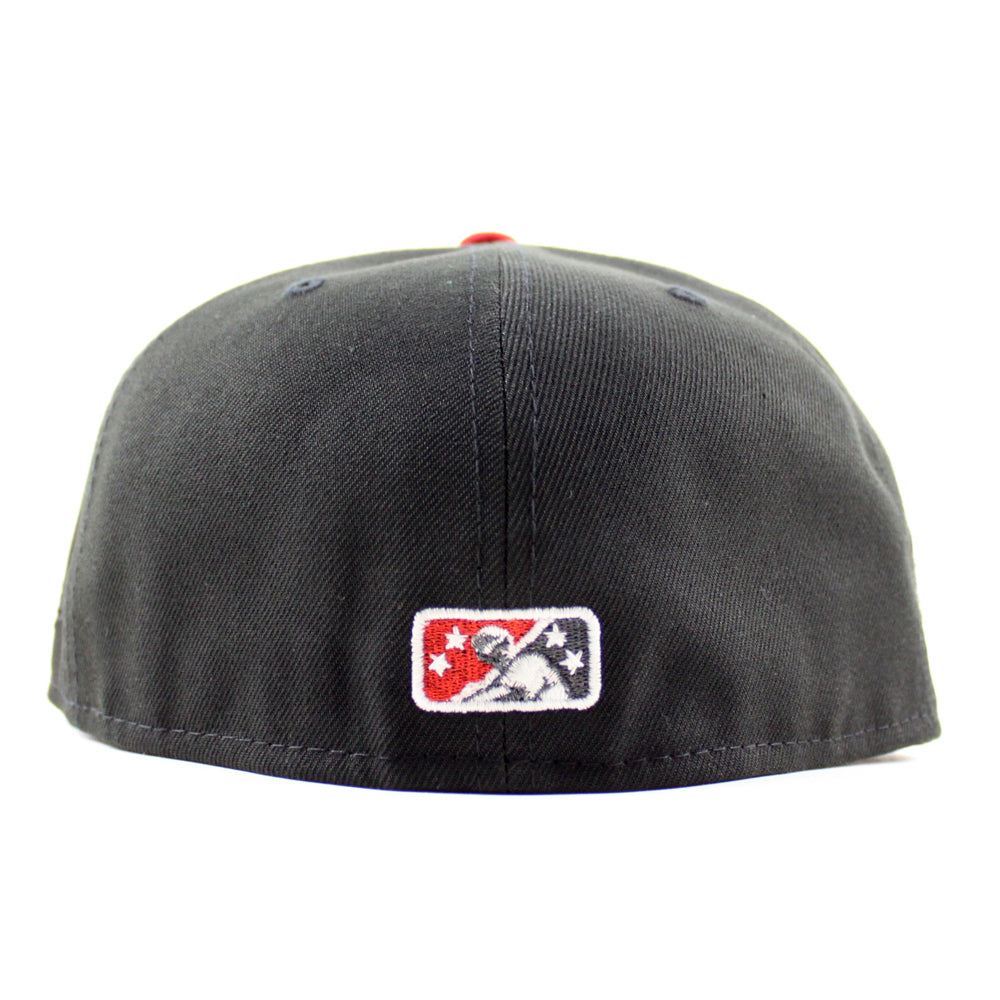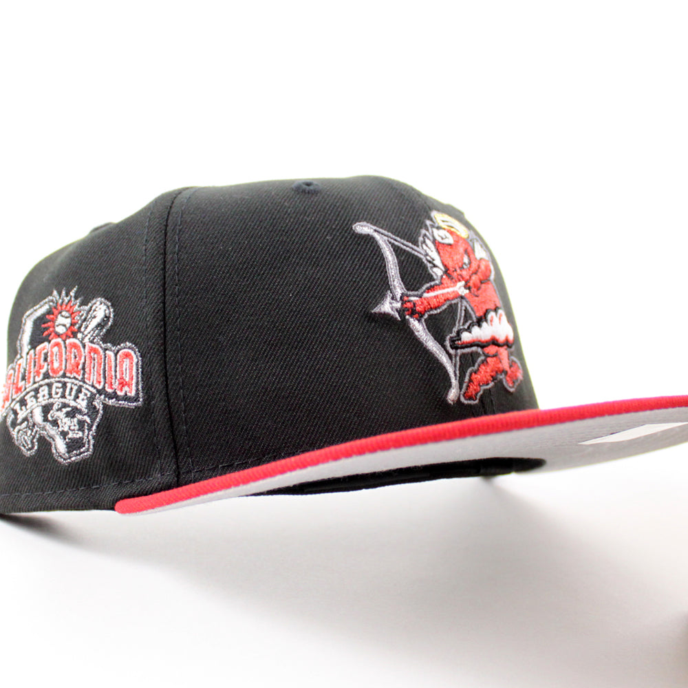 INLAND EMPIRE 66ERS California League Patch New Era 59Fifty Fitted Hat in Black, Scarlet Red & Gray Under Brim
