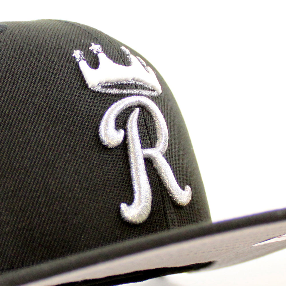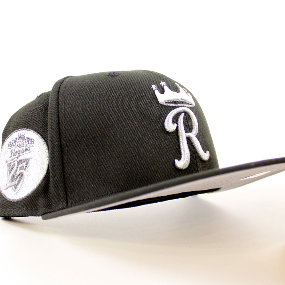 Kansas City Royals 1969-1993 25 Years Patch New Era 59Fifty Fitted Hat in Black and Gray Under Brim.