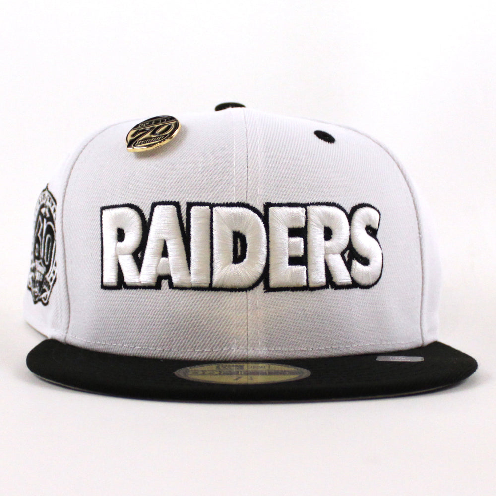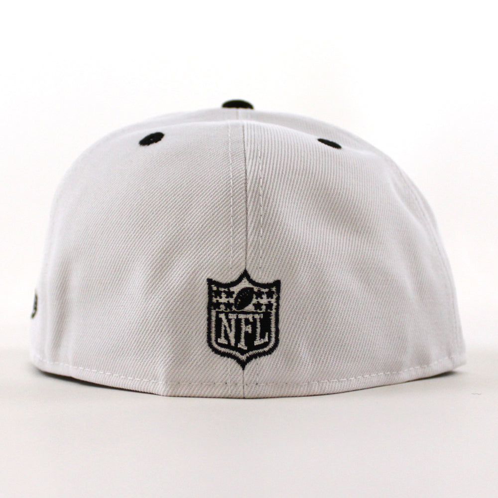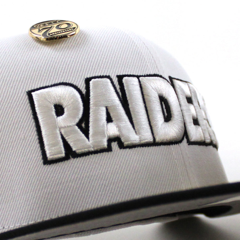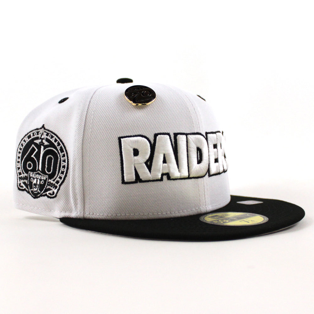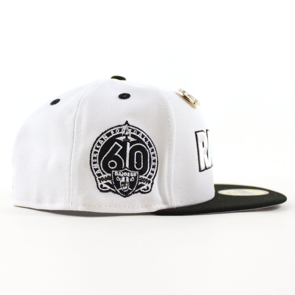 Las Vegas Raiders 5950 Days Super Bowl 60 New Era 59Fifty Fitted Hat (White Gold Black Gray Under Brim)