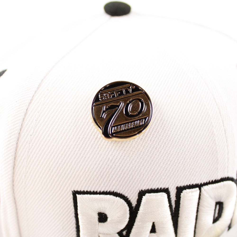 Las Vegas Raiders 5950 Days Super Bowl 60 New Era 59Fifty Fitted Hat in White, Vegas Gold, Black and Gray Under Brim.