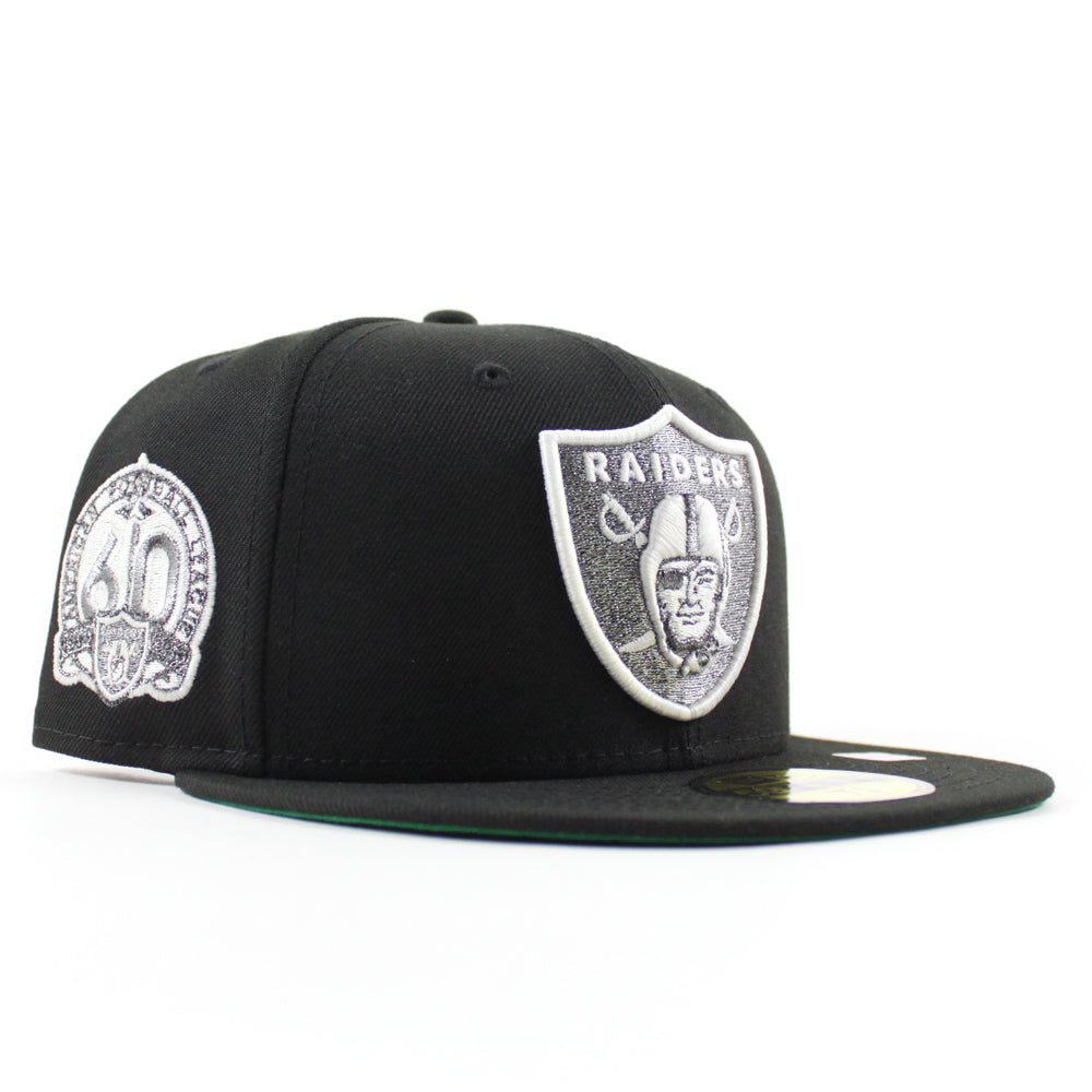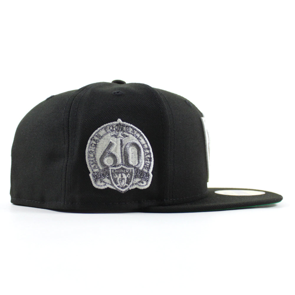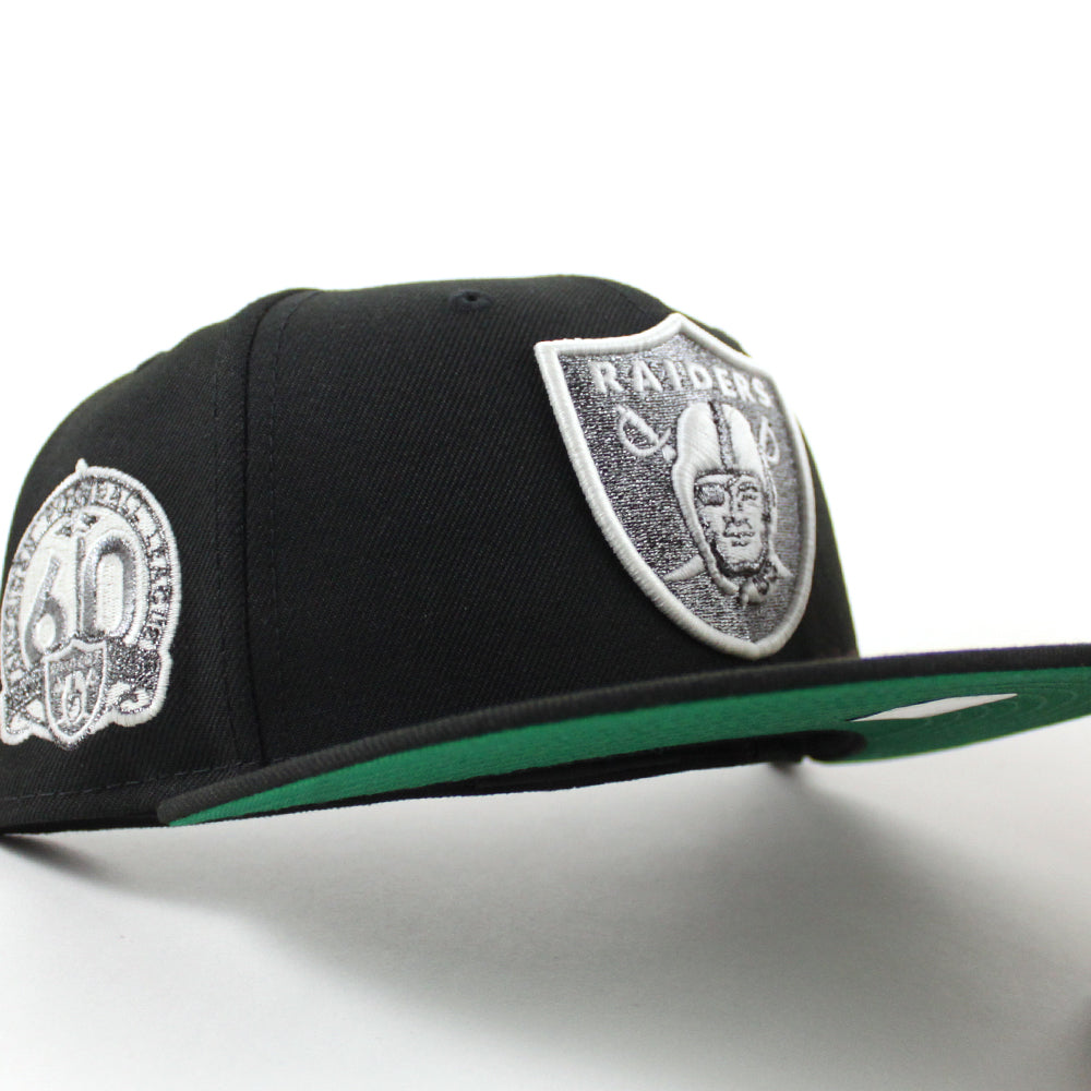 Las Vegas Raiders 60th anniversary New Era 59Fifty Fitted Hat in Black with Green Under Brim.Β