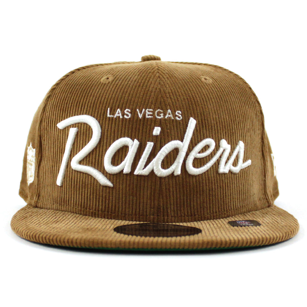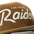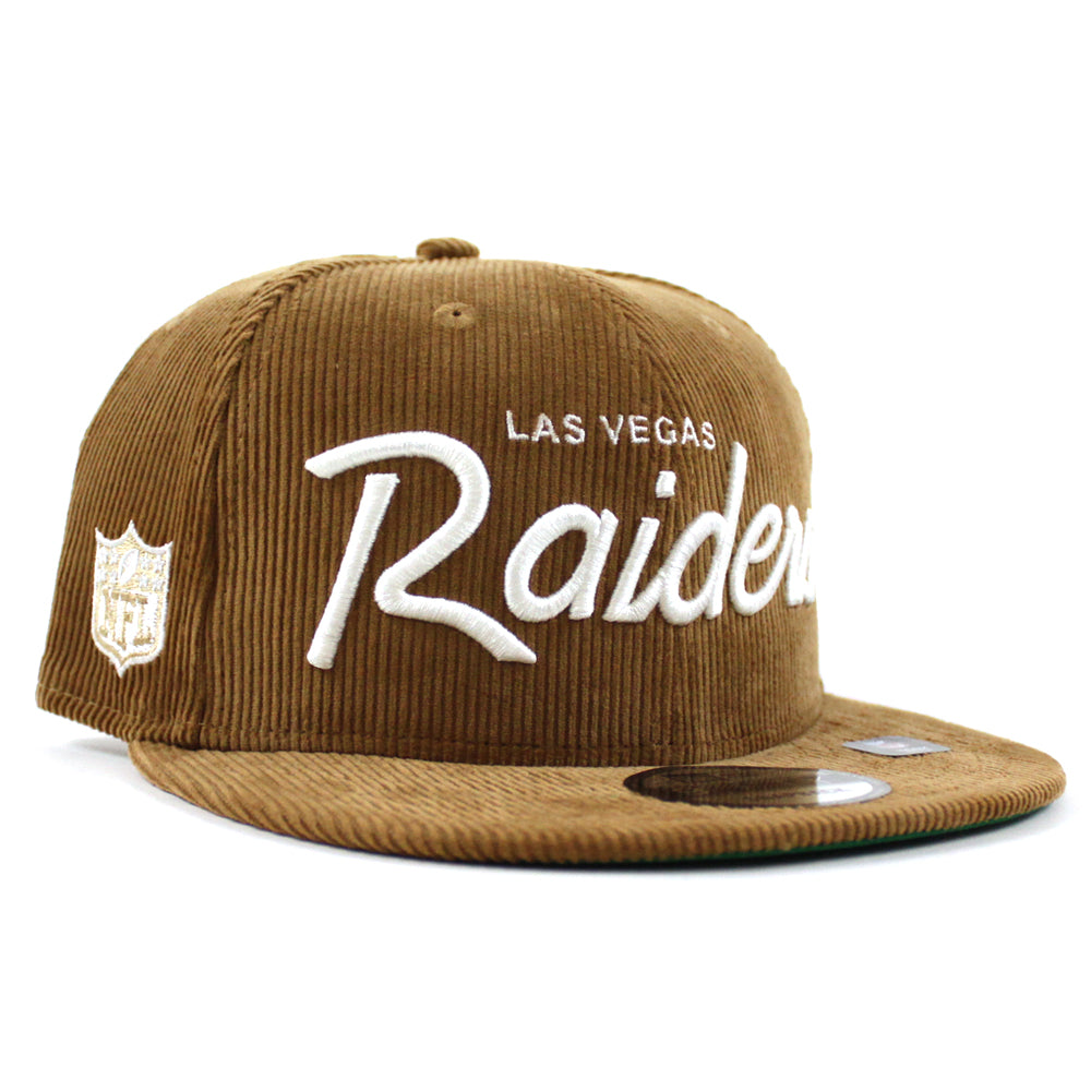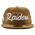 Las Vegas Raiders CORDSCRIPT New Era 9Fifty Snapback Hat in Corduroy and Green Under Brim.