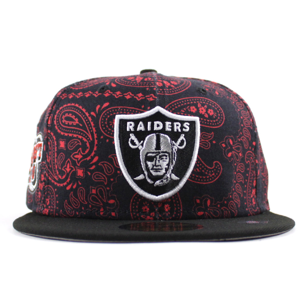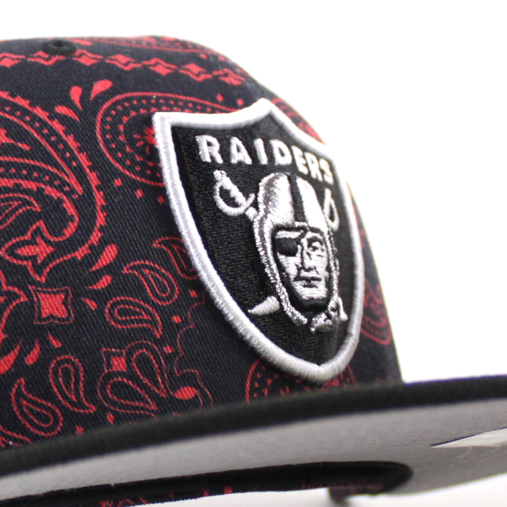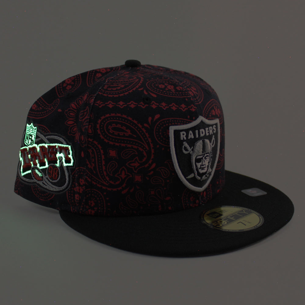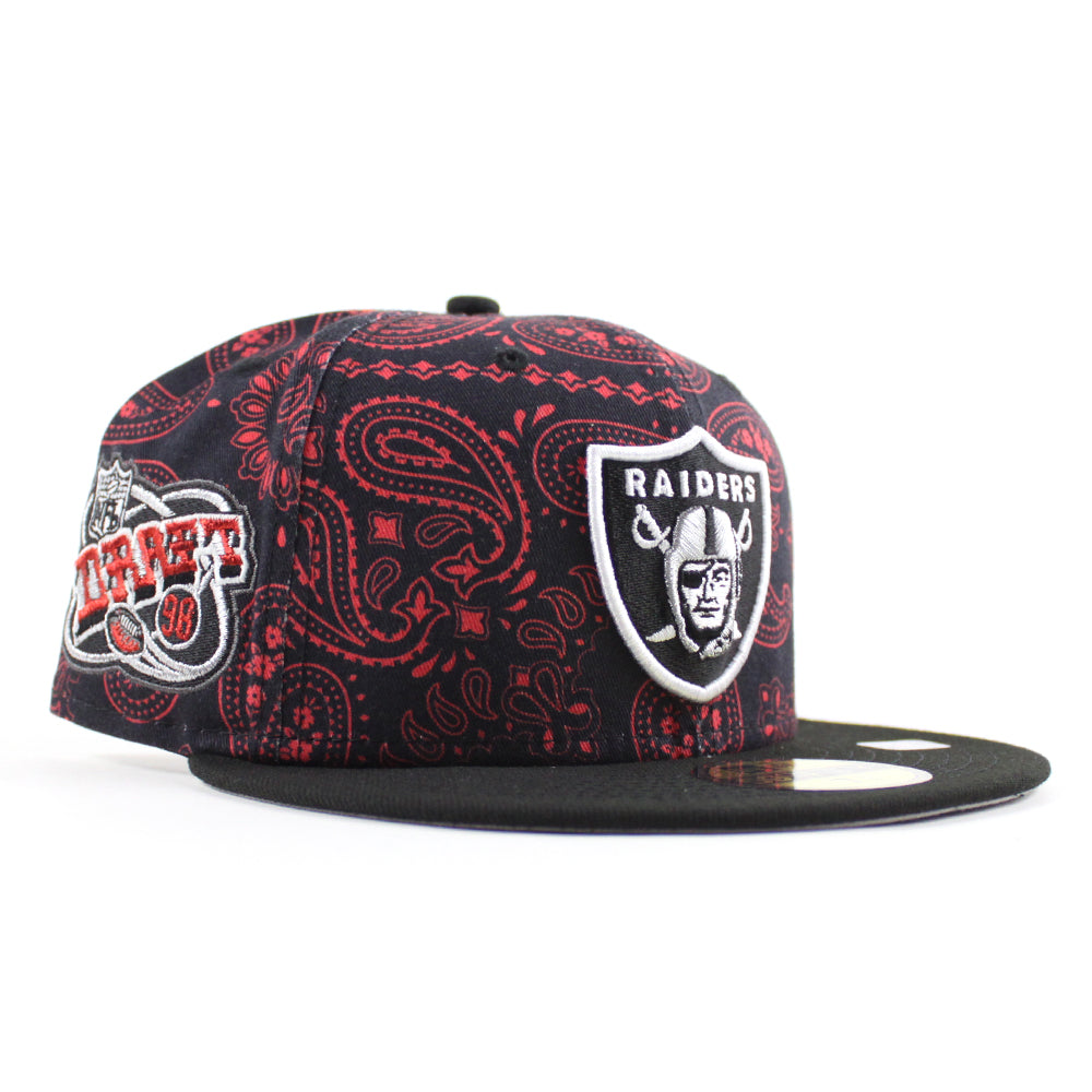 Las Vegas Raiders Draft 1998 New Era 59Fifty Fitted Hat (Red Paisley Black Gray Under Brim)