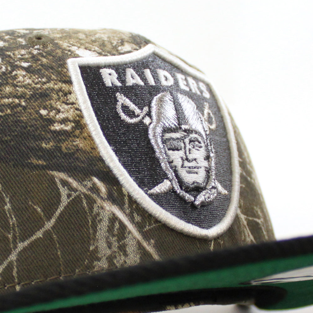 Las Vegas Raiders Inaugural Season 2020 New Era 59Fifty Fitted Hat in RealTree, Black with Green Under Brim.