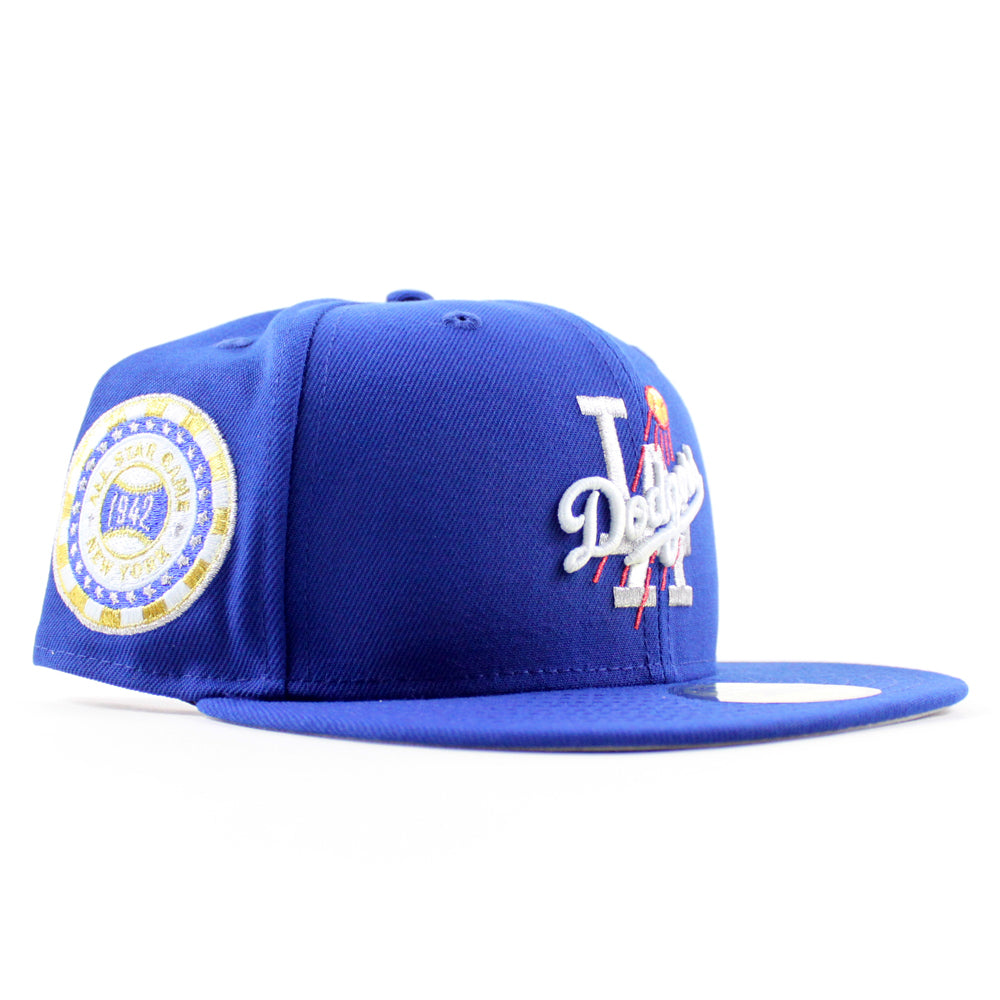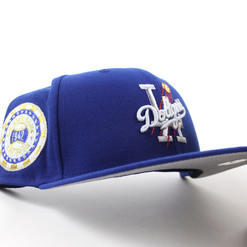 Los Angeles Dodgers 1942 All Star Game New Era 59Fifty Fitted Hat in Royal Blue and Gray Brim.