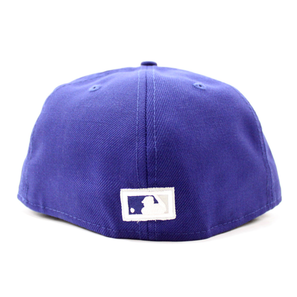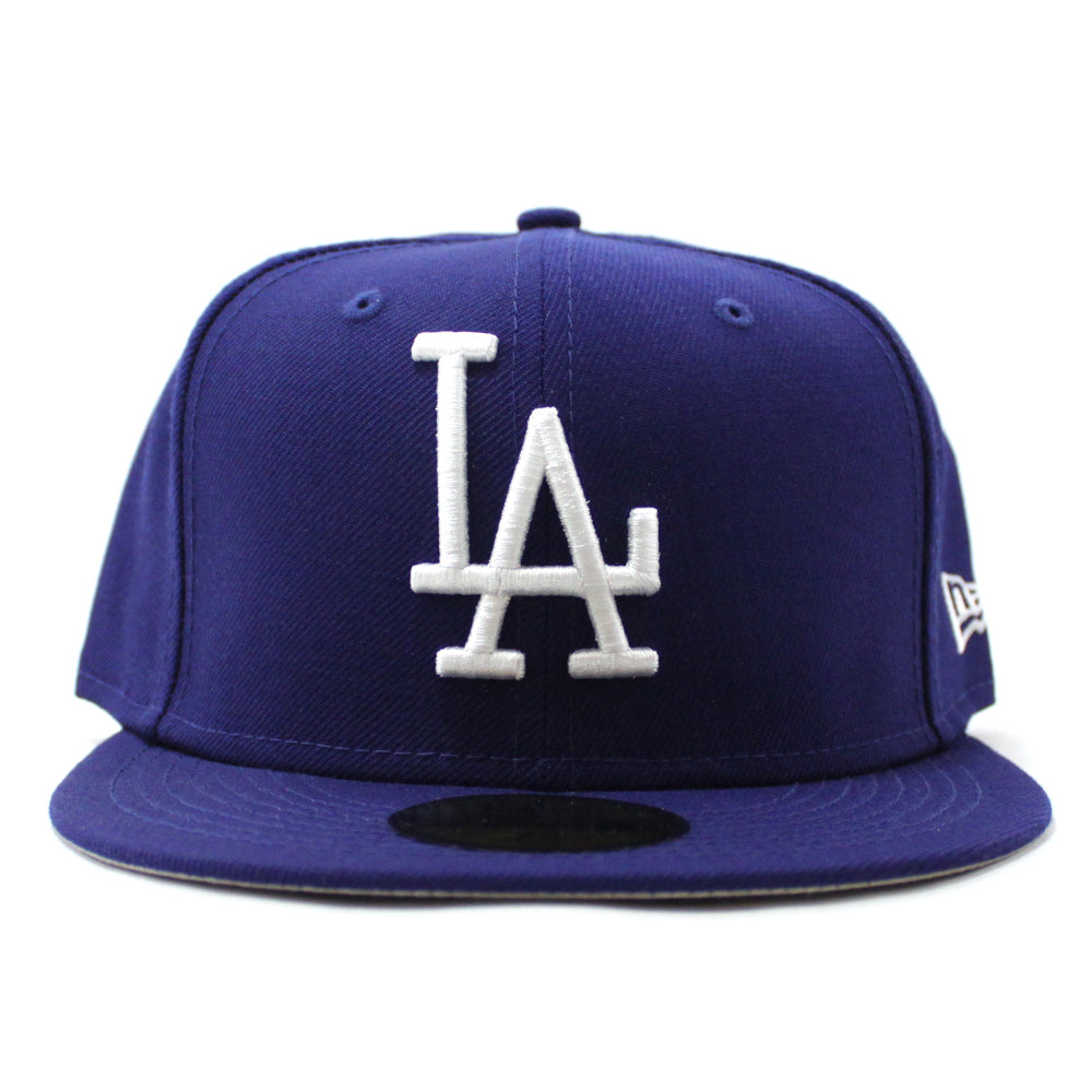 This Dodgers New Era Fitted Cap is Blue with a white logo and Gray Under Brim.