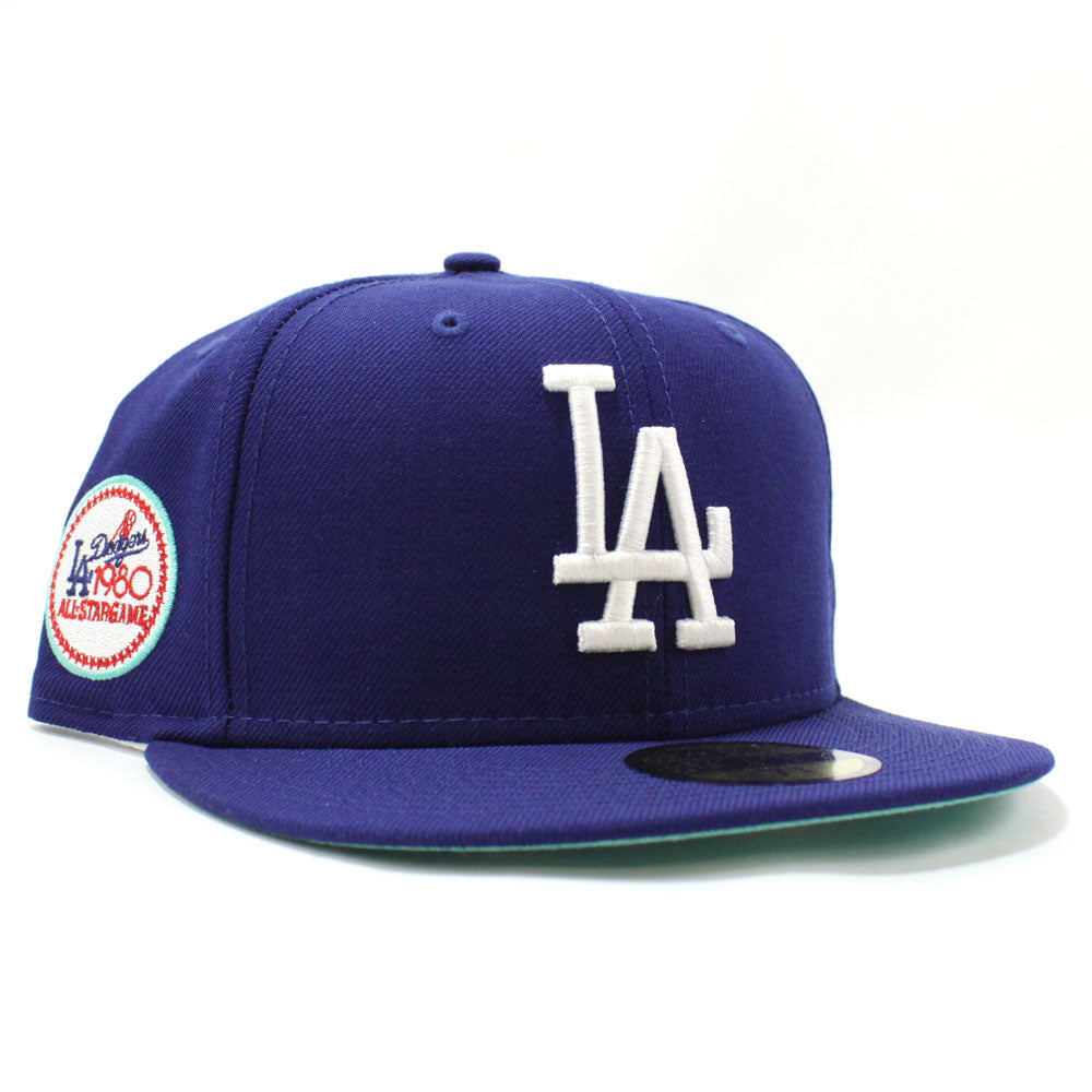 Los Angeles Dodgers 1980 All-Star Game New Era 59Fifty Fitted Hat in Blue with Mint Under Brim.