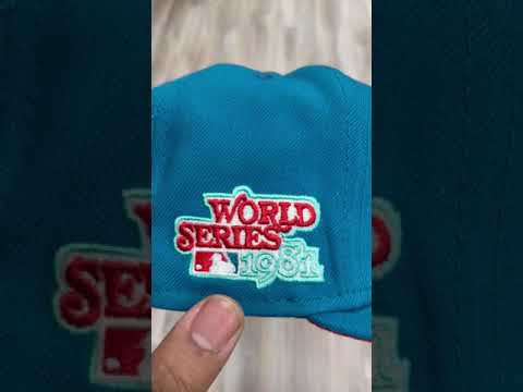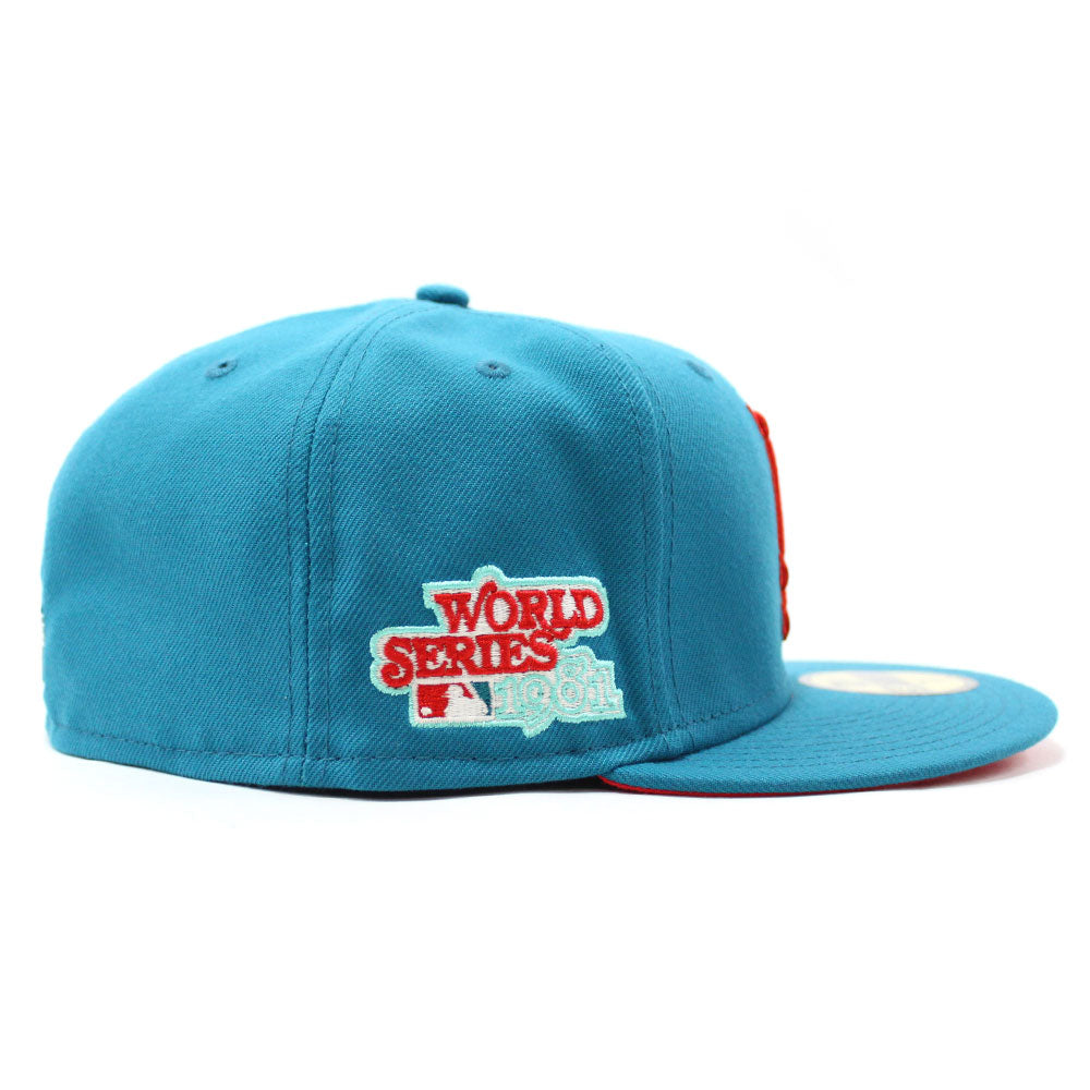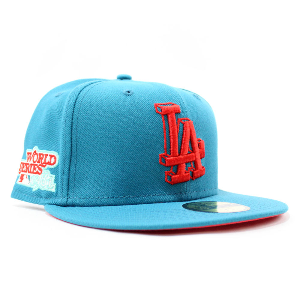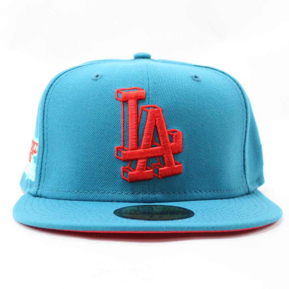 Los Angeles Dodgers 1981 World Series New Era 59Fifty Fitted Hat (Glow in the Dark Turquoise Lava Red Under Brim)