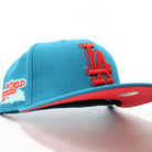 Los Angeles Dodgers 3D Logo 1981 World Series New Era 59Fifty Fitted Hat with Turquoise and Lava Red Under Brim.