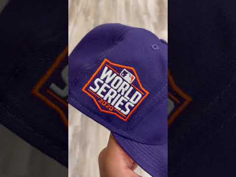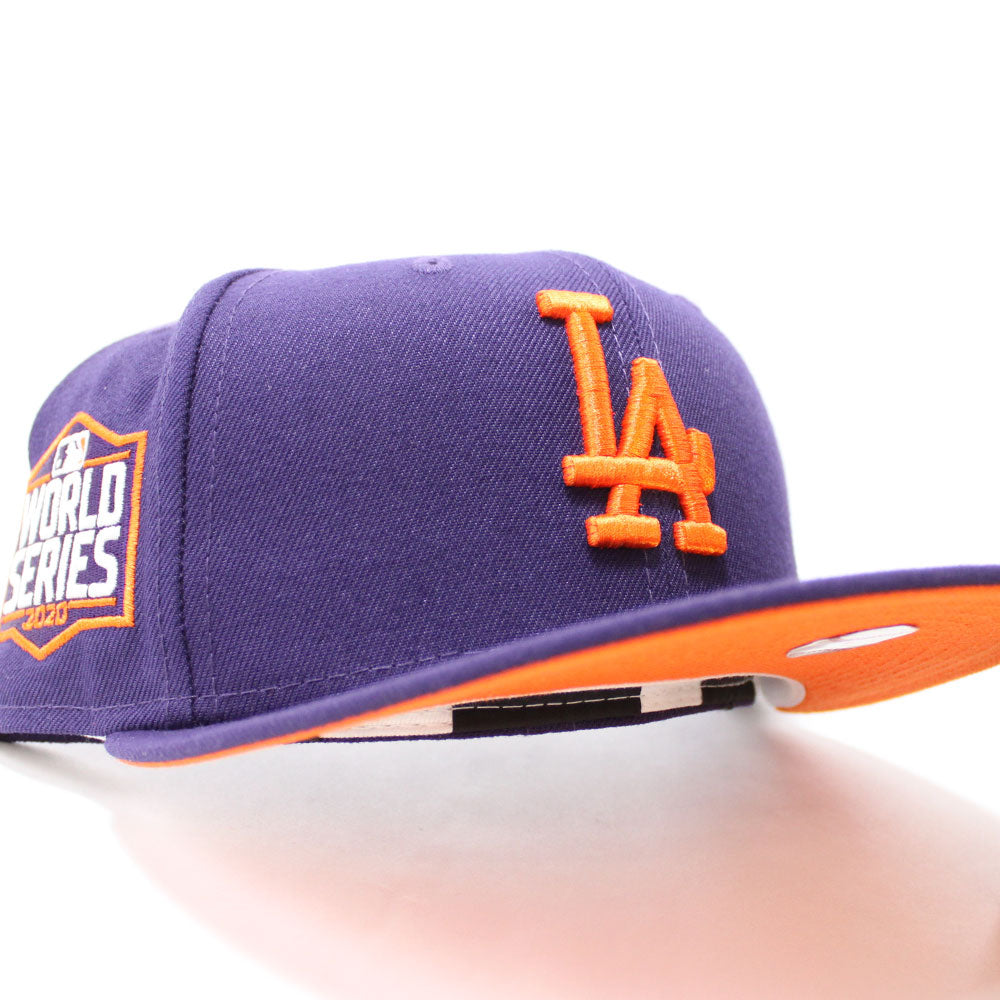 Los Angeles Dodgers 2020 World Series New Era 59Fifty Fitted Hat in Purple & Orange Under Brim.