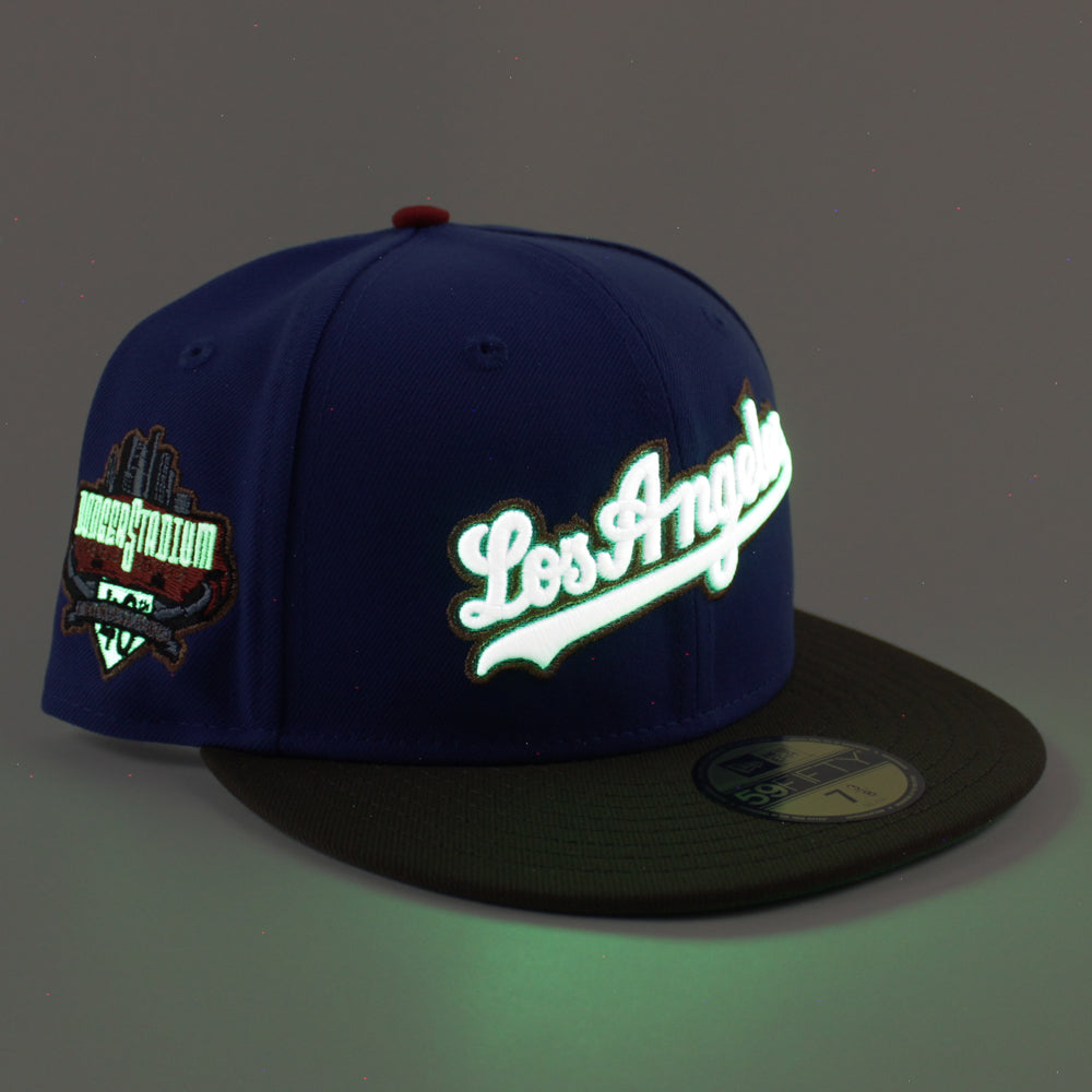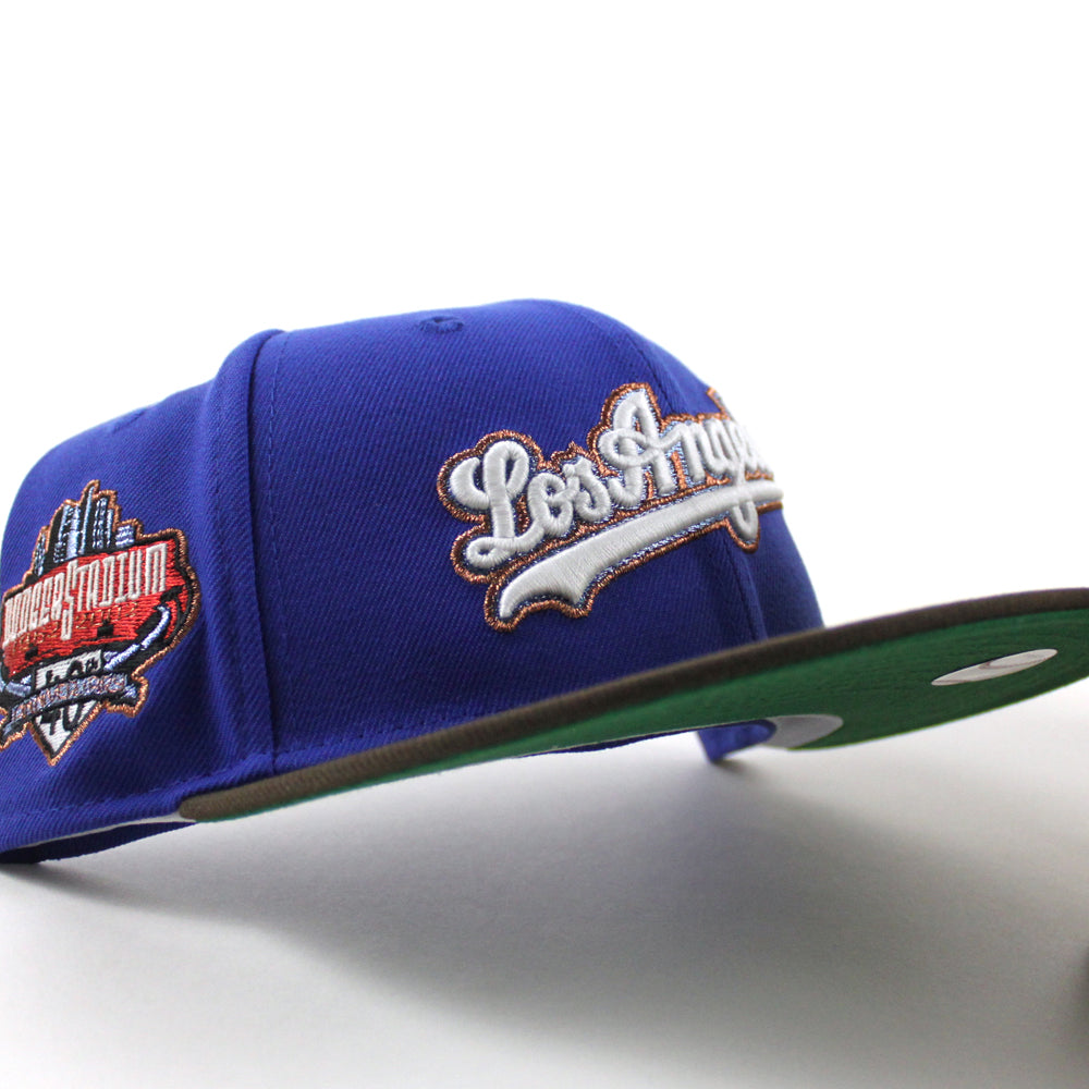 Los Angeles Dodgers 40th Anniversary Dodgers Stadium New Era 59Fifty Fitted Hat in Majestic Blue Walnut and Green Under Brim.Β